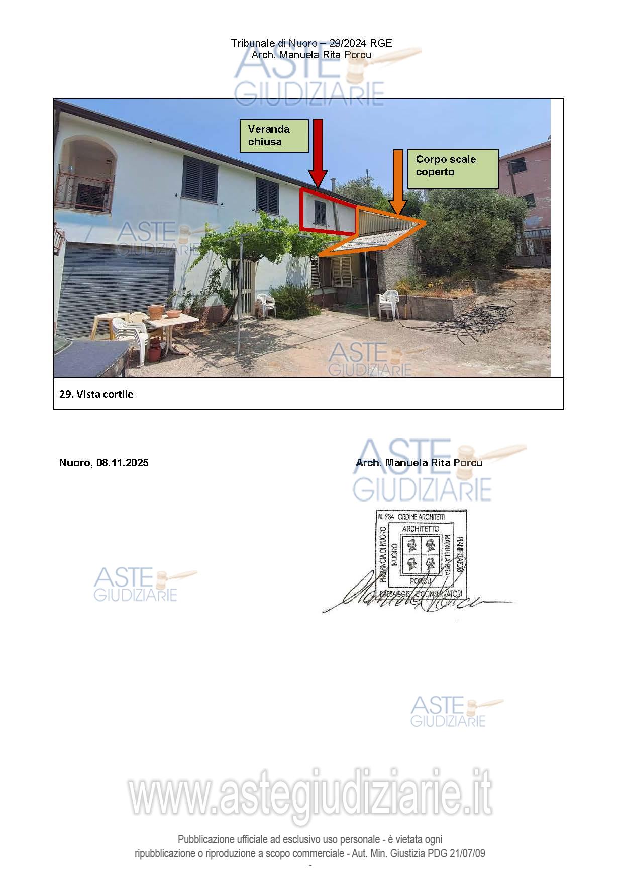 Vendita all'asta Senza incanto, con gara telematica asincrona - LOTTO UNICO: Villetta. Prezzo base € 164.655,20 (offerta minima € 123.491,40). Data inizio operazioni di vendita: 28/05/2026 ore 10:00. Giudice Denise Ecca. Professionista delegato alla vendita Avv. Giampiero Serra - Email "studiolegaleserra@libero.it"; Cell. 3288012283; Tel. 0784232087. Custode Giudiziario Ivg Tempio Pausania - Email "visite.ivgnuoro@gmail.com"; Tel. 079630505. Rif. Tribunale di Nuoro - Espropriazione immobiliare (cartabia) n. 29/2024