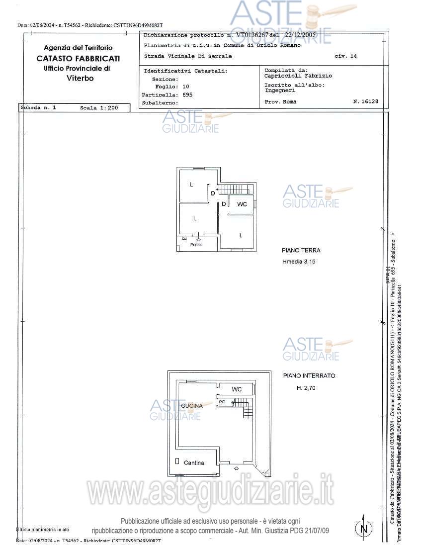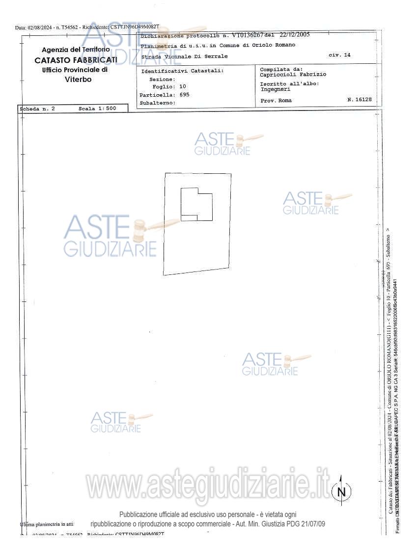 Vendita all'asta Senza incanto, con gara telematica asincrona - LOTTO UNICO: Piena proprietà 1/1di immobile indipendente su due livelli circondato da terreni di proprietà sito nel Comune di Oriolo Romano (VT) in Strada di Serrale 14. Per accedere all’immobile dalla pubblica via si arriva direttamente al terreno di proprietà ed entrando attraverso il cancello si può percorrere tutto il terreno fino a giungere all’abitazione, l'appartamento su due livelli sviluppa una superficie totale di circa 110 mq calpestabili, i terreni si sviluppano per una superficie di 5.290 mq; è libero. Prezzo base € 152.000,00 (offerta minima € 114.000,00). Data inizio operazioni di vendita: 27/05/2026 ore 11:20. Professionista delegato alla vendita Avv. Paola Alessandri - Email "paola.alessandri@libero.it"; Cell. 3485132530; Tel. 0761798777. Custode Giudiziario Avv. Paola Alessandri - Email "paola.alessandri@libero.it"; Cell. 3485132530; Tel. 0761798777. Rif. Tribunale di Viterbo - Espropriazione immobiliare (cartabia) n. 30/2024