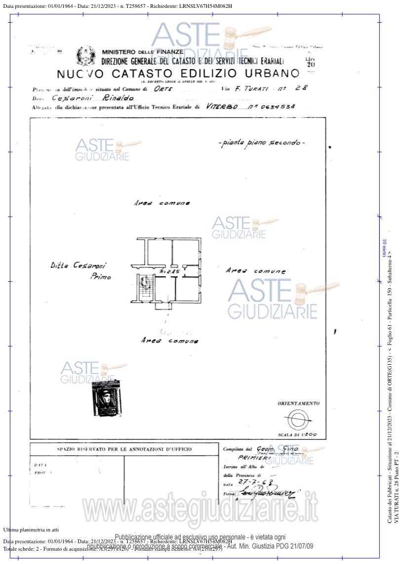Vendita all'asta Senza incanto, con gara telematica asincrona - LOTTO UNICO: Appartamento al piano secondo, con ripostiglio pertinenziale al piano terreno. Si accede alla palazzina attraverso il portone che immette nella scala condominiale. L’ appartamento in oggetto, che si sviluppa per complessivi 63,00 Mq. E' presente un corridoio centrale distributivo, sul quale si aprono le porte della cucina, di due camere, un bagno ed un soggiorno. Dalla portafinestra della cucina si accede ad un balconcino posto sulla facciata est del fabbricato (1,60 m. di superficie). Prezzo base € 48.000,00 (offerta minima € 36.000,00). Data inizio operazioni di vendita: 13/05/2026 ore 11:00. Giudice Federico Bonato. Professionista delegato alla vendita Dott. Felice Arriga - Email "felicearriga@gmail.com"; Cell. 3287219903; Tel. 3287219903. Custode Giudiziario Dott. Felice Arriga - Email "felicearriga@gmail.com"; Cell. 32872199003; Tel. 3287219903. Rif. Tribunale di Viterbo - Esecuzione immobiliare post legge 80 n. 199/2022