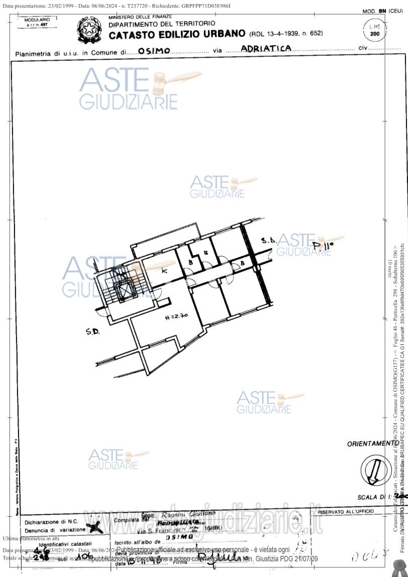 Vendita all'asta Senza incanto, con gara telematica asincrona - LOTTO UNICO: Lotto composto da due beni immobili (appartamento e garage), siti in località Osimo Stazione nel comune di Osimo (AN), in zona ben servita dal punto di vista commerciale con disponibilità buona di parcheggi. Prezzo base € 131.286,00 (offerta minima € 98.465,00). Data inizio operazioni di vendita: 06/11/2025 ore 09:15. Giudice Giuliana Filippello. Professionista delegato alla vendita Avv. Daniele Conti. Custode Giudiziario Avv. Daniele Conti - Email "avv.danieleconti@gmail.com"; Tel. 3392312165. Rif. Tribunale di Ancona - Espropriazione immobiliare (cartabia) n. 94/2024