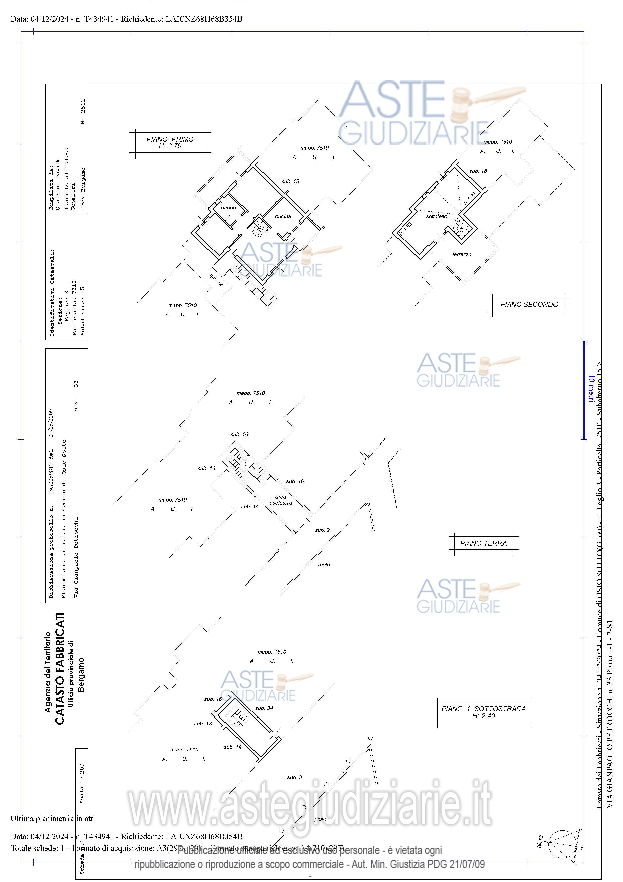 Vendita in attesa dell'emissione del nuovo bando d'asta. LOTTO UNICO: Appartamento su tre piani, con area esterna adibita ad accesso alla proprietà delle parti comuni condominiali, in cui si trovano le due scale una per l’accesso al piano primo, e l’altra per l’accesso del piano primo interrato. Composto al piano primo da cucina, ingresso/pranzo/soggiorno, due camere da letto, bagno con disimpegno zona notte e due balconi. Una scala a chiocciola collega il piano primo al piano sottotetto. Il piano sottotetto non è abitabile ed è dotato di terrazzo. Ultimo prezzo base € 172.050,65 (offerta minima € 129.037,98). Giudice Vincenzo Domenico Scibetta. Professionista delegato alla vendita Dott. Angelo Galizzi - Email "studiogalizzi@studiocgls.com"; Tel. 0350073211. Custode Giudiziario Dott. Angelo Galizzi - Email "studiogalizzi@studiocgls.com"; Tel. 0350073211. Rif. Tribunale di Bergamo - Esecuzione immobiliare post legge 80 n. 502/2024