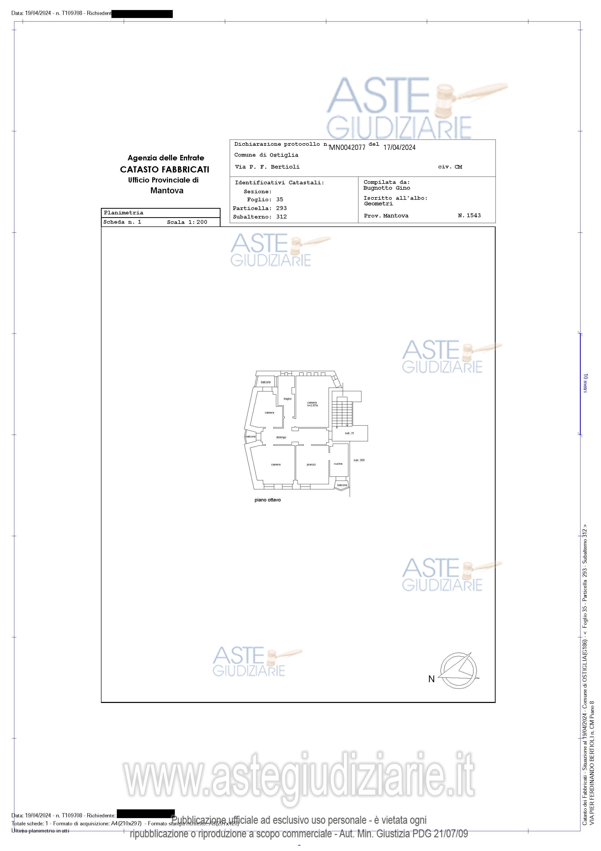 Vendita all'asta Senza incanto, con gara telematica sincrona mista - LOTTO UNICO: Proprietà di appartamento al piano ottavo di edificio condominiale denominato "Aurora", con cantina . Prezzo base € 27.971,00 (offerta minima € 20.979,00). Data vendita 13/05/2026 ore 15:00. Giudice Mauro Pietro Bernardi. Professionista delegato alla vendita Not. Paola Galassi - Email "pgalassi@notariato.it". Custode Giudiziario Sovemo Srl Istituto Vendite Giudiziarie Di Mantova - Email "immobiliaremantova@sovemo.com"; Tel. 0376220694. Rif. Tribunale di Mantova - Espropriazione immobiliare (cartabia) n. 191/2023