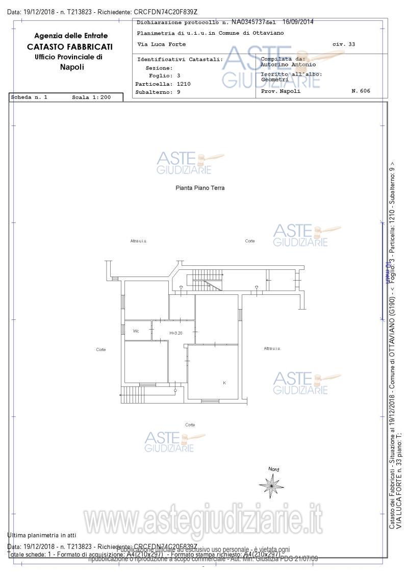 Vendita all'asta Senza incanto, con gara telematica asincrona - LOTTO 1: Appartamento sito in Ottaviano (NA) alla Via Luca Forte n.32, piano Terra, di 130,90 mq con garage posto al piano terra di 88,94 mq. Prezzo base € 52.618,00 (offerta minima € 39.464,00). Data inizio operazioni di vendita: 14/01/2026 ore 15:00. Professionista delegato alla vendita Avv. Diego Sorrentino - Email "diegosorrentino@gmail.com"; Cell. 3281790065; Tel. 3281790065. Custode Giudiziario Avv. Diego Sorrentino - Email "diegosorrentino@gmail.com"; Cell. 3281790065; Tel. 3281790065. Rif. Tribunale di Nola - Esecuzione immobiliare post legge 80 n. 400/2017