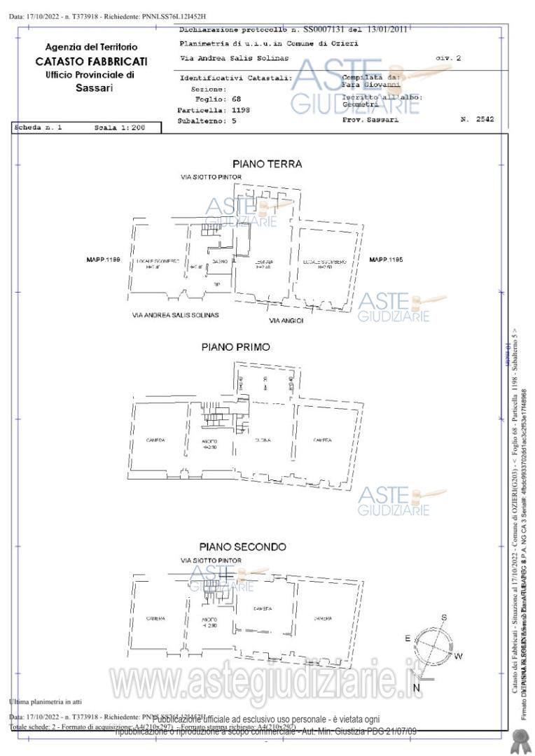 Vendita all'asta Senza incanto - LOTTO UNICO: Palazzina storica ubicata a Ozieri (SS) Via Salis Solinas n. 2 identificata al Catasto Fabbricati al F. 68 part. 1198, sub 5, cat. A3, classe 2, composta da quattro piani per totali 15,5 vani di 445,53 mq escluse aree scoperte. Prezzo base € 32.274,00 (offerta minima € 24.274,02). Data vendita 31/03/2026 ore 10:00. Giudice Elisa Remonti. Professionista delegato alla vendita Avv. Riccardo Carmelita - Email "riccardocarmelita@gmail.com"; Cell. 3408085868. Custode Giudiziario Istituto Vendite Giudiziarie Sassari - Email "visitaivgsassari@gnail.com"; Tel. 079260228. Rif. Tribunale di Sassari - Esecuzione immobiliare post legge 80 n. 22/2021