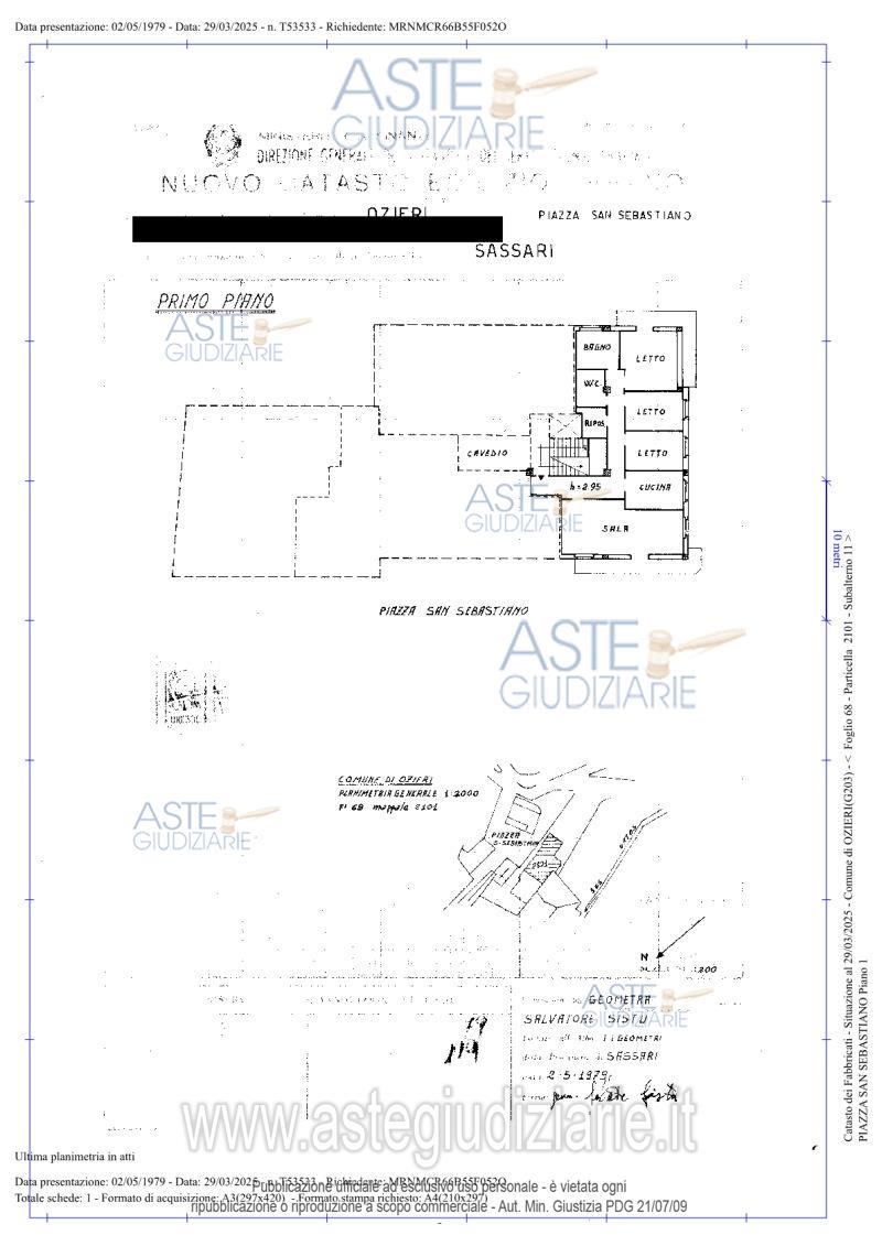 Vendita all'asta Senza incanto, con gara telematica asincrona - LOTTO UNICO: Appartamento ubicato a Ozieri (SS) - Piazza San Sebastiano , n. 3. L'unità si sviluppa su: - superficie calpestabile totale di mq 117,00 oltre balconi mq 17,70 - superficie lorda di mq 132,70 oltre balconi mq 17,70 - superficie commerciale complessiva di mq 137,12. Identificato al catasto Fabbricati - Fg. 68, Part. 2101, Sub. 11, Categoria A2. Prezzo base € 57.594,36 (offerta minima € 43.195,77). Data inizio operazioni di vendita: 16/04/2026 ore 17:00. Giudice Remonti. Professionista delegato alla vendita Avv. Pasquale Fadda - Email "avvocatopasqualefadda@gmail.com"; Tel. 3475083757. Custode Giudiziario Istituto Vendite Giudiziarie Sassari - Email "visitaivgsassari@gmail.com"; Tel. 079260228. Rif. Tribunale di Sassari - Espropriazione immobiliare (cartabia) n. 132/2024