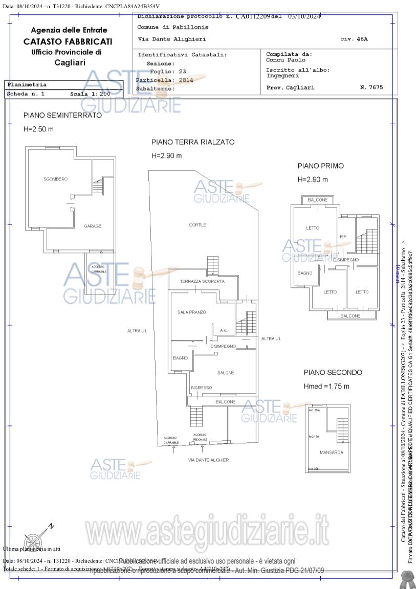 Vendita all'asta Senza incanto, con gara telematica asincrona - LOTTO UNICO: LOTTO UNICO: quota pari a 1/1 del diritto di proprietà sull’immobile per civile abitazione sito in Comune di Pabillonis, via Dante Alighieri 46a, piano S1-T-1, censito al Catasto Fabbricati al Foglio 23, particella 2814, superficie catastale 234 mq, totale escluse aree scoperte 211 mq, categoria A/2, classe 1, consistenza vani 8, rendita catastale euro 144,61.L’immobile risulta occupato. Prezzo base € 44.416,51 (offerta minima € 33.312,38). Data inizio operazioni di vendita: 06/05/2026 ore 12:00. Professionista delegato alla vendita Dott. Paolo D'angelo - Email "paolo.dang@libero.it"; Tel. 070659619. Custode Giudiziario Lino Icilio Felice Fresi - Email "IVG.VISITEIMMOBILI@TISCALI.IT"; Tel. 0702299036. Rif. Tribunale di Cagliari - Esecuzione immobiliare post legge 80 n. 316/2021