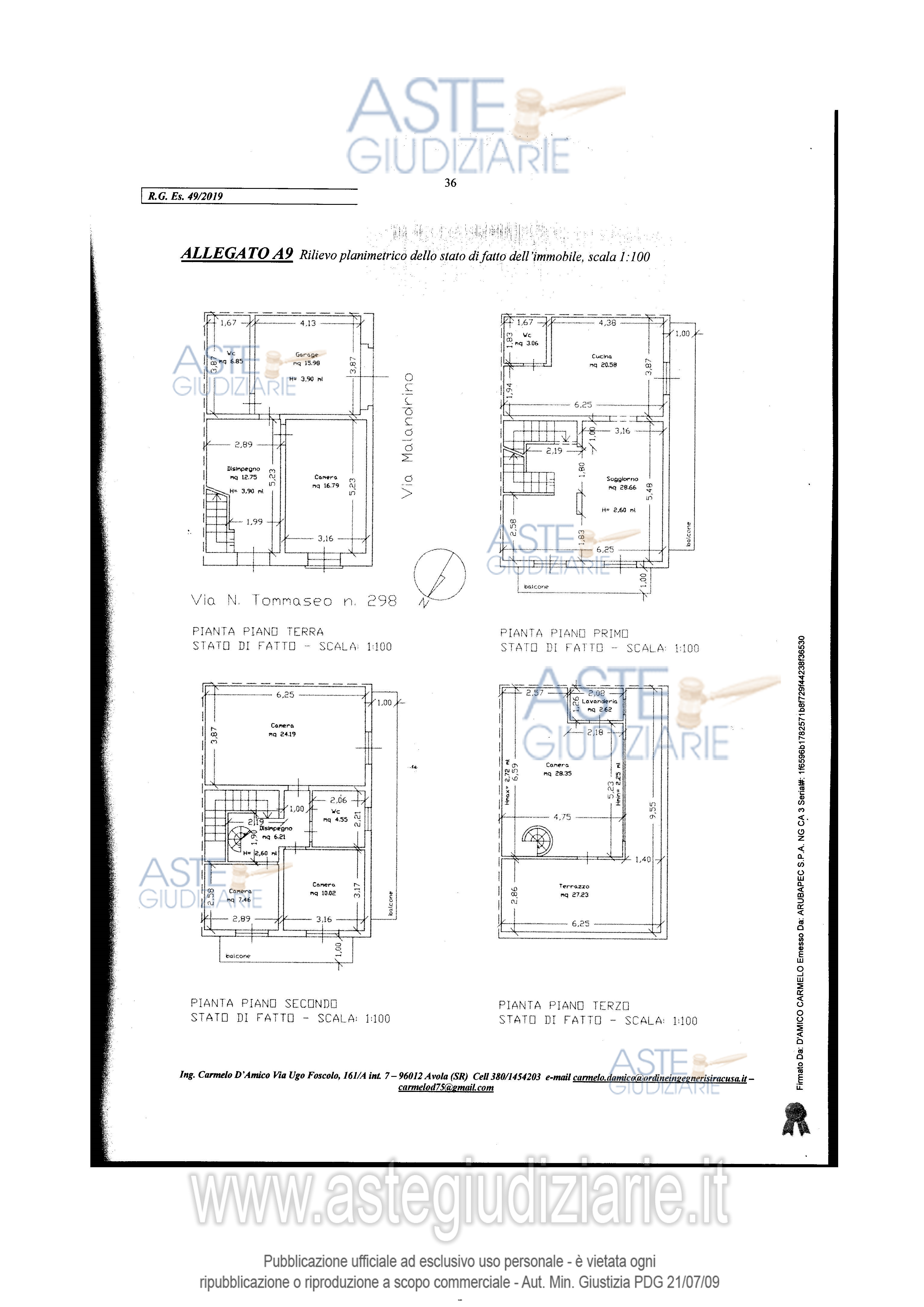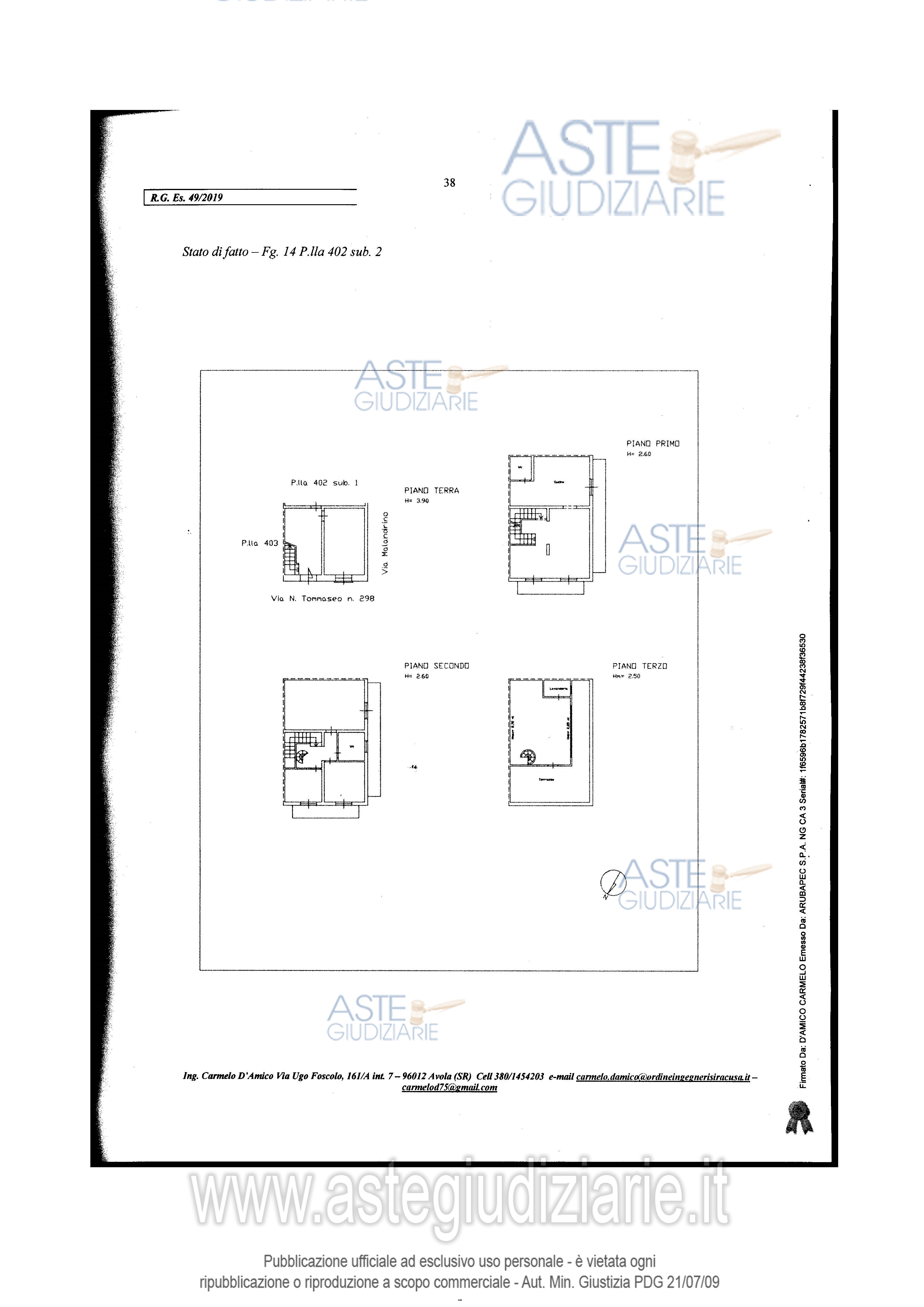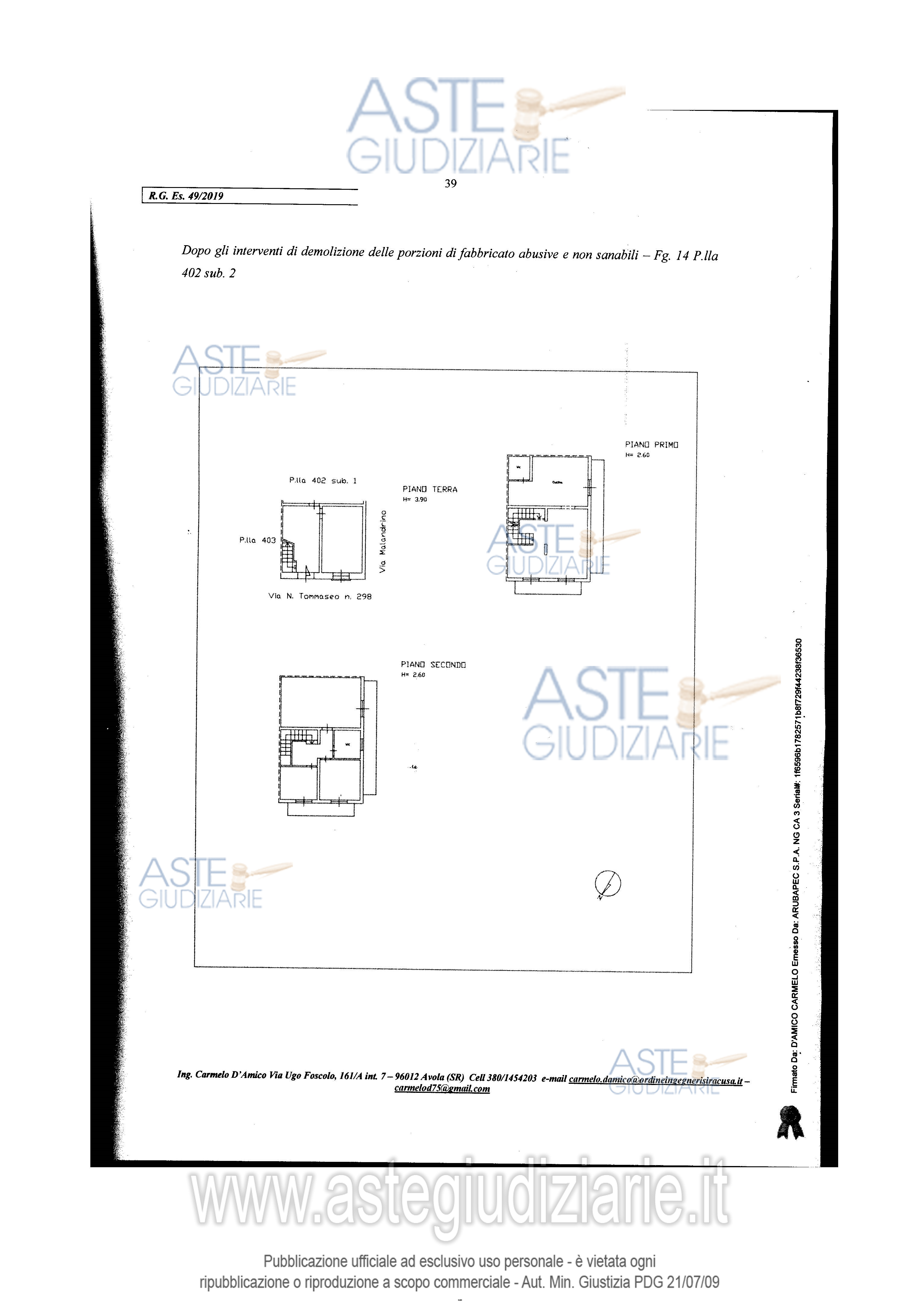 Vendita in attesa dell'emissione del nuovo bando d'asta. LOTTO UNICO: Fabbricato adibito a civile abitazione posto a piano terra, primo e secondo piano.garage di pertinenza dell'abitazione posto a piano terra di 23 mq circa.Il fabbricato presenta delle difformità, nella disposizione degli ambienti sia a piano terra, che al primo piano e secondo piano. Le difformità presenti risultano sanabili con una regolare richiesta di sanatoria edilizia art. 14 L.R. 16/2016.Le opere difformi presenti asl terzo piano non possono essere sanate. Ultimo prezzo base € 43.412,00 (offerta minima € 32.559,00). Professionista delegato alla vendita Avv. Giovanni Maltese - Email "avv.gmaltese@gmail.com"; Tel. 3388893021. Custode Giudiziario Avv. Giovanni Maltese - Email "avv.gmaltese@gmail.com"; Tel. 3388893021. Rif. Tribunale di Siracusa - Esecuzione immobiliare post legge 80 n. 49/2019