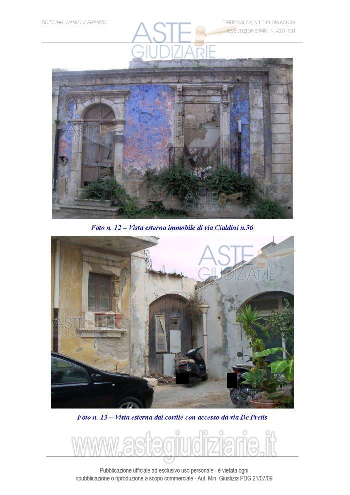 Vendita all'asta Senza incanto, con gara telematica sincrona mista - LOTTO 3: Piena ed intera proprietà di fabbricato diruto e in stato di abbandono in Pachino (SR), Via Cialdini n. 56, in N.C.E.U. al foglio 15, p.lla 8702 sub (graffati) 1-2 [già foglio 15, p.lla 8053 sub (graffati) 1-2, già foglio 15, p.lle (graffate) 2399-2400], cat. A/4, cl. 2, vani 3,5, superficie catastale totale mq 107-totale escluse aree scoperte mq 105, R.C. € 104,84, Via Enrico Cialdini n. 48 piano T-1. Prezzo base € 33.750,00 (offerta minima € 25.312,50). Data vendita 08/04/2026 ore 11:00. Giudice Concita Cultrera. Professionista delegato alla vendita Avv. Riccardo Bordone - Email "avv.riccardobordone@mbcg.it"; Cell. 3388273630; Tel. 09311562510. Custode Giudiziario Avv. Riccardo Bordone - Email "avv.riccardobordone@mbcg.it"; Cell. 3388273630; Tel. 09311562510. Rif. Tribunale di Siracusa - Esecuzione immobiliare post legge 80 n. 427/1991