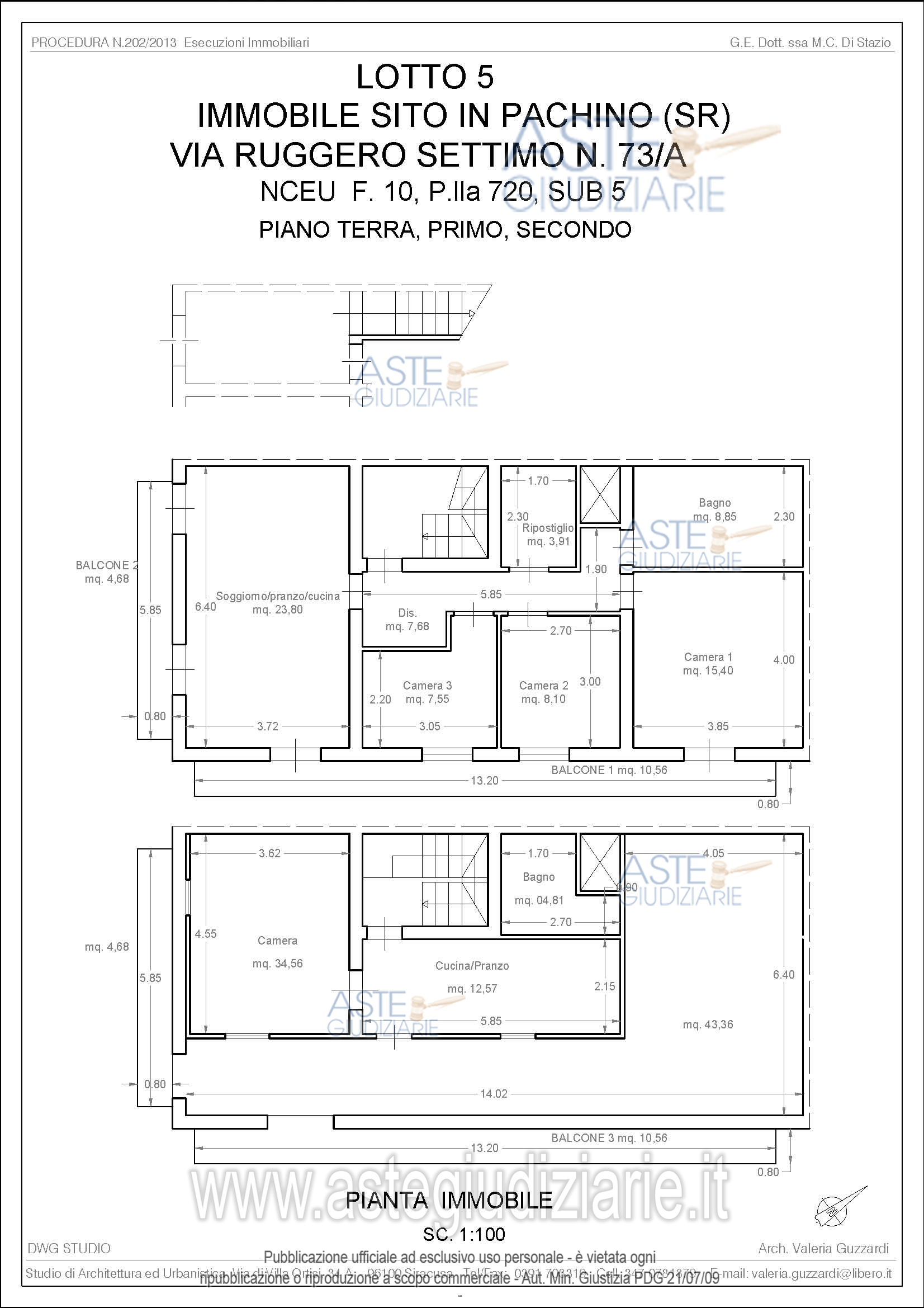 Vendita all'asta Senza incanto, con gara telematica sincrona mista - LOTTO 5: piena ed intera proprietà di appartamento in Pachino (SR), Via Ruggero Settimo n. 73/A p. 1-2, in N.C.E.U. al foglio 10, p.lla 720 Sub. 5, cat. A/3, cl. 3, consistenza vani 7,5, superficie catastale totale mq 157-totale escluse aree scoperte mq 144, R.C. € 464,81, Via Ruggero Settimo n. 73/A piano T-1-2. Prezzo base € 65.471,34 (offerta minima € 49.103,50). Data vendita 10/06/2026 ore 10:00. Giudice Maria Cristina Di Stazio. Professionista delegato alla vendita Avv. Riccardo Bordone - Email "avv.riccardobordone@mbcg.it"; Cell. 3388273630; Tel. 09311562510. Custode Giudiziario Avv. Riccardo Bordone - Email "avv.riccardobordone@mbcg.it"; Cell. 3388273630; Tel. 09311562510. Rif. Tribunale di Siracusa - Esecuzione immobiliare post legge 80 n. 202/2013