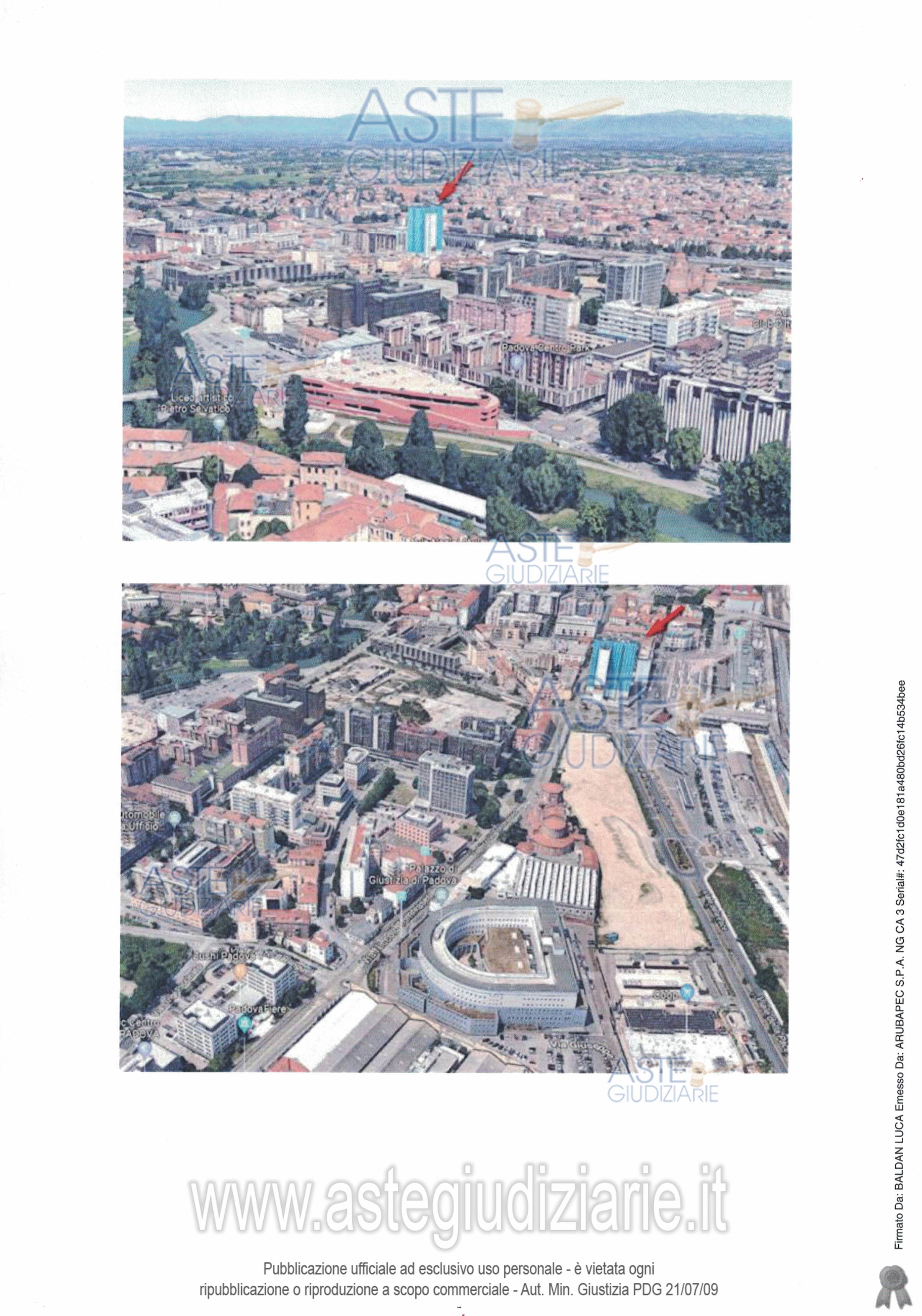 Vendita all'asta Senza incanto, con gara telematica sincrona - LOTTO 1: LOTTO UNO. Piena proprietà di porzione del fabbricato commerciale-direzionale-residenziale denominato “Condominio Belvedere”, sito nel Comune di Padova (PD) avente accesso da Piazzale della Stazione n. 8 e da via Niccolò Tommaseo n. 17 e, precisamente: due appartamenti, due garage e due ripostigli (cantine). Libero. Prezzo base € 456.000,00 (offerta minima € 342.000,00). Data vendita 12/11/2025 ore 11:00. Professionista delegato alla vendita Avv. Ana Elisa Marti Garro - Email "martigarro.aste@gmail.com"; Tel. 0496892448. Custode Giudiziario Avv. Ana Elisa Marti Garro - Email "martigarro.aste@gmail.com"; Tel. 0496892448. Rif. Tribunale di Padova - Esecuzione immobiliare post legge 80 n. 181/2017