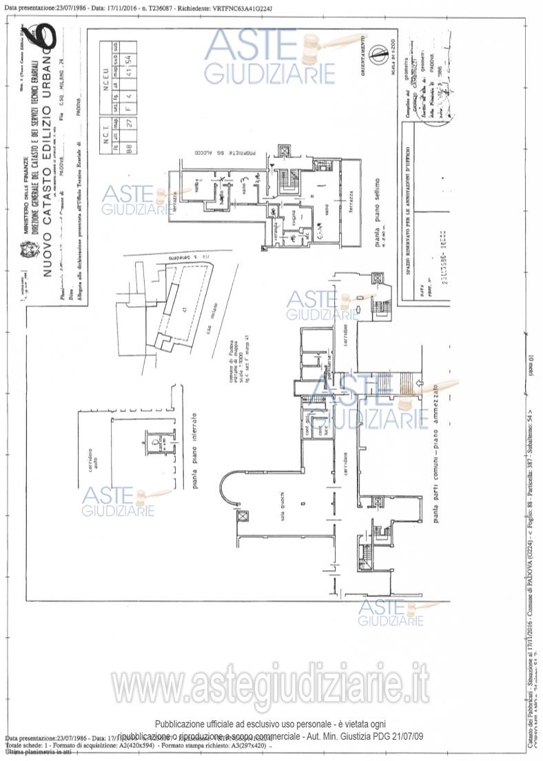 Vendita all'asta Senza incanto, con gara telematica sincrona - LOTTO UNICO: Appartamento su due livelli (divisibile in due unità) ai piani sesto e settimo, con terrazza e ripostiglio al piano ottavo, nonché cantine e garage al piano interrato. Occupato da debitore. Prezzo base € 385.000,00 (offerta minima € 288.750,00). Data vendita 03/12/2025 ore 16:00. Giudice Paola Rossi. Professionista delegato alla vendita Avv. Stefania Faggian - Email "s.faggian@pvg.network". Custode Giudiziario Avv. Stefania Faggian - Email "s.faggian@pvg.network"; Tel. 0498774383. Rif. Tribunale di Padova - Esecuzione immobiliare post legge 80 n. 1223/2011