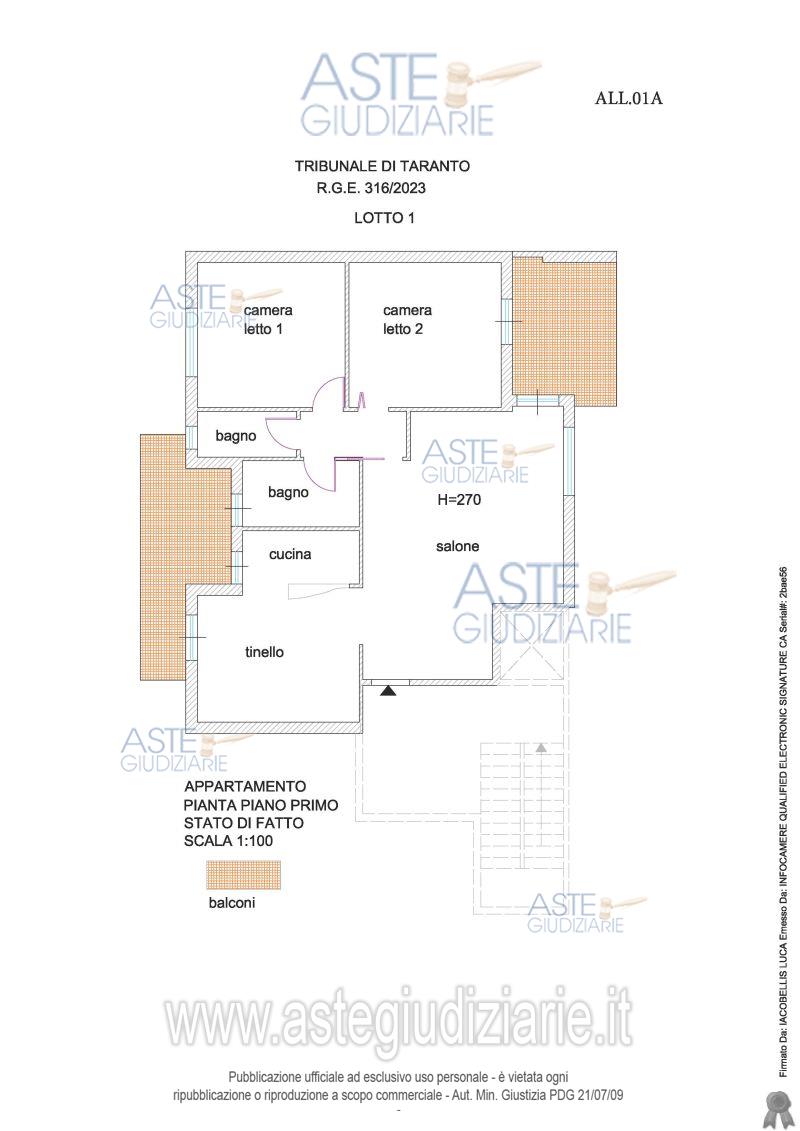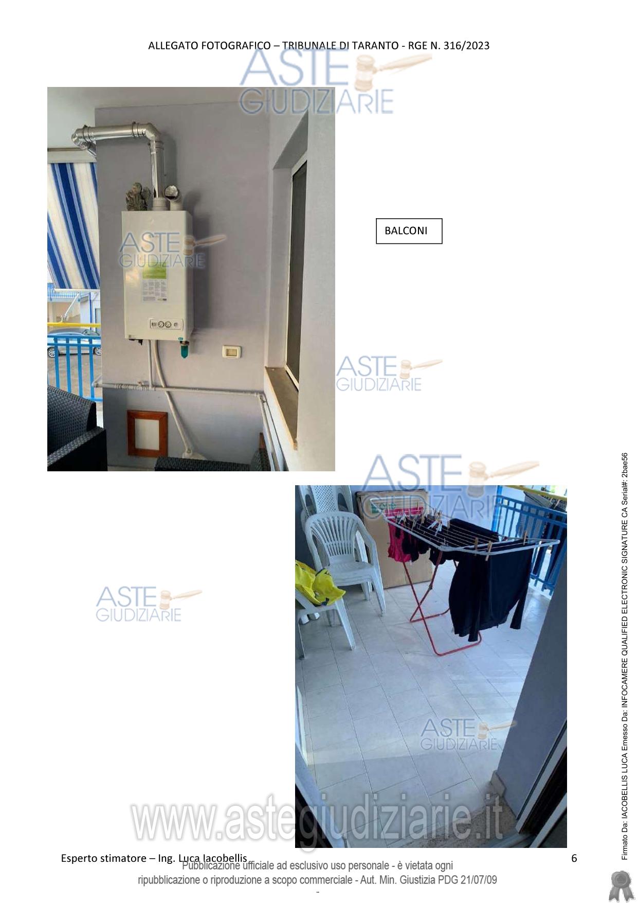 Vendita in attesa dell'emissione del nuovo bando d'asta. LOTTO UNICO: Appartamento al primo piano composto da salone-ingresso, cucina-tinello, due camere da letto, zona disimpegno, bucataio, bagno e da due balconi, oltre box auto posto al piano interrato. Ultimo prezzo base € 149.903,00 (offerta minima € 112.552,45). Giudice Andrea Paiano. Professionista delegato alla vendita Avv. Carmela Milena Liuzzi - Email "carmelaliuzzi@legpec.it". Custode Giudiziario Avv. Carmela Milena Liuzzi - Email "mliuzzi68@gmail.com"; Cell. 3387258228. Rif. Tribunale di Taranto - Espropriazione immobiliare (cartabia) n. 316/2023