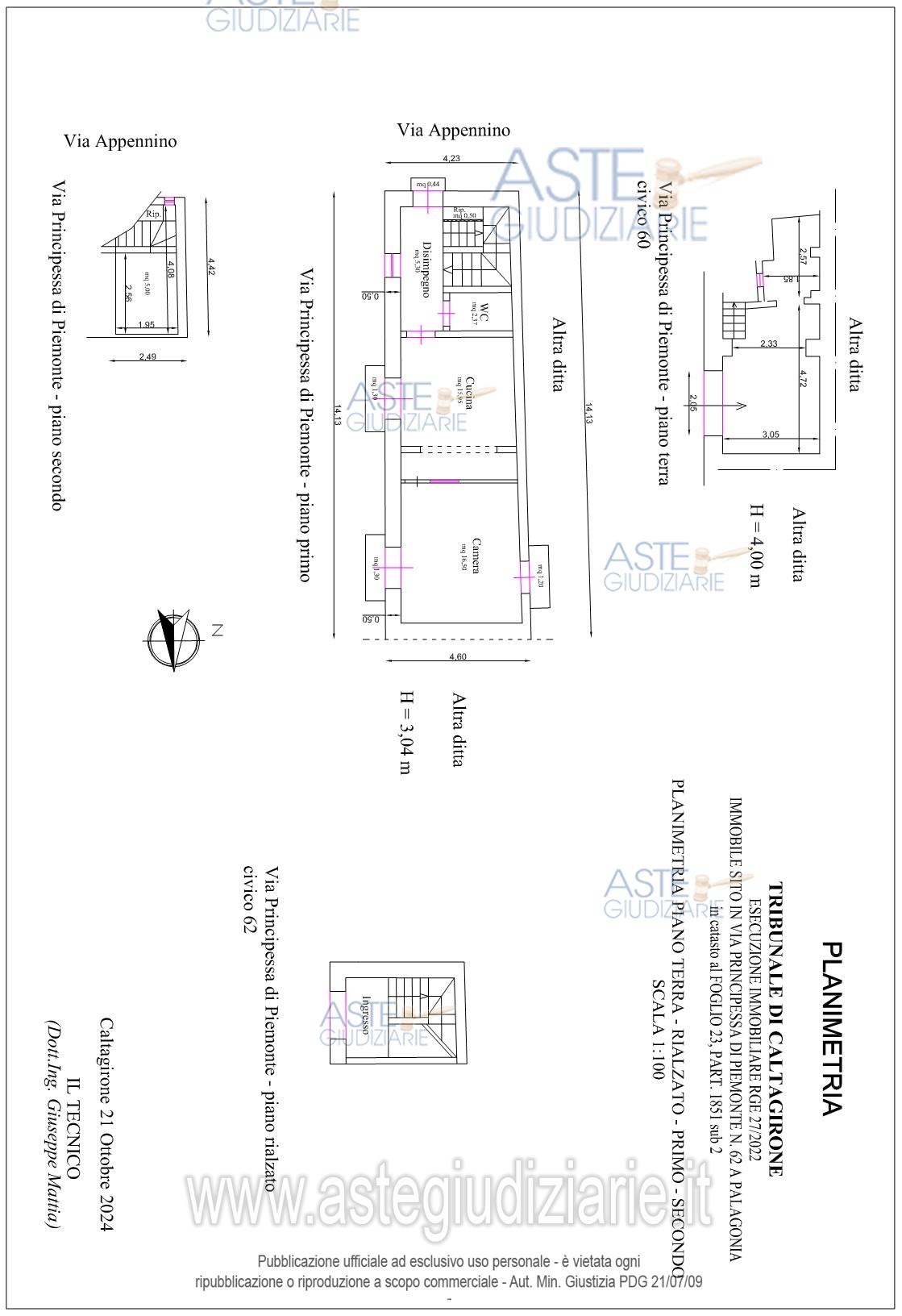 Vendita all'asta Senza incanto, con gara telematica sincrona mista - LOTTO UNICO: LOTTO 1: Abitazione di tipo civile (categ. A2 – classe 01 – consistenza 5 vani) sita in Palagonia (CT) in via Principessa di Piemonte n. 62-64, piano T–1–2, inscritta al N.C.E.U. del Comune di Palagonia al foglio 23, alla particella 1851 sub 2; Al prezzo base d’asta pari ad € 40.000,00; l’offerta minima potrà essere pari al 75% del prezzo sopra indicato; in caso di gara tra più offerenti, l’offerta minima in aumento non potrà essere inferiore ad € 500,00. Prezzo base € 40.000,00 (offerta minima € 30.000,00). Data vendita 03/04/2026 ore 16:00. Professionista delegato alla vendita Avv. Salvatore Barone - Email "avv.salvatorebarone@gmail.com"; Cell. 3397058390; Tel. 09331967825. Custode Giudiziario Avv. Salvatore Barone - Email "avv.salvatorebarone@gmail.com"; Cell. 3397058390; Tel. 09331967825. Rif. Tribunale di Caltagirone - Esecuzione immobiliare post legge 80 n. 27/2022