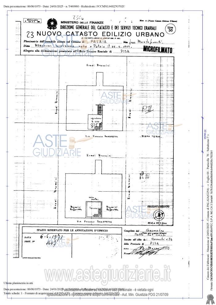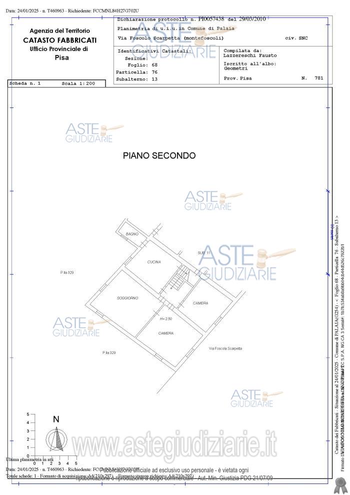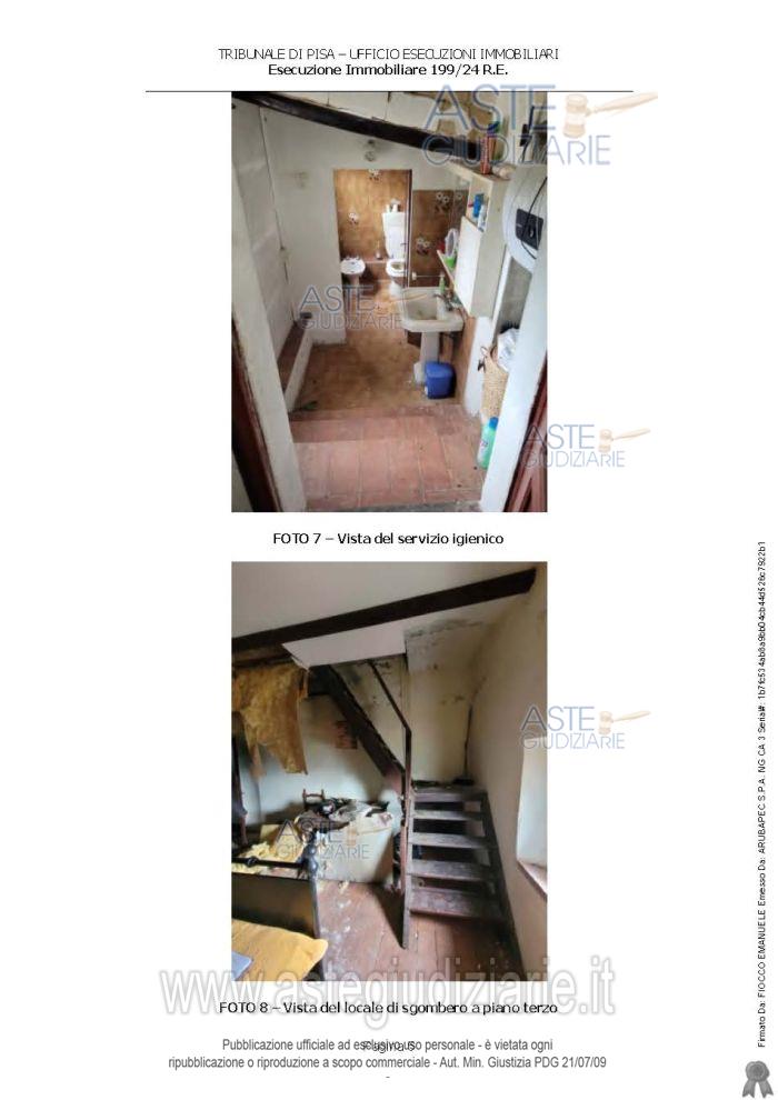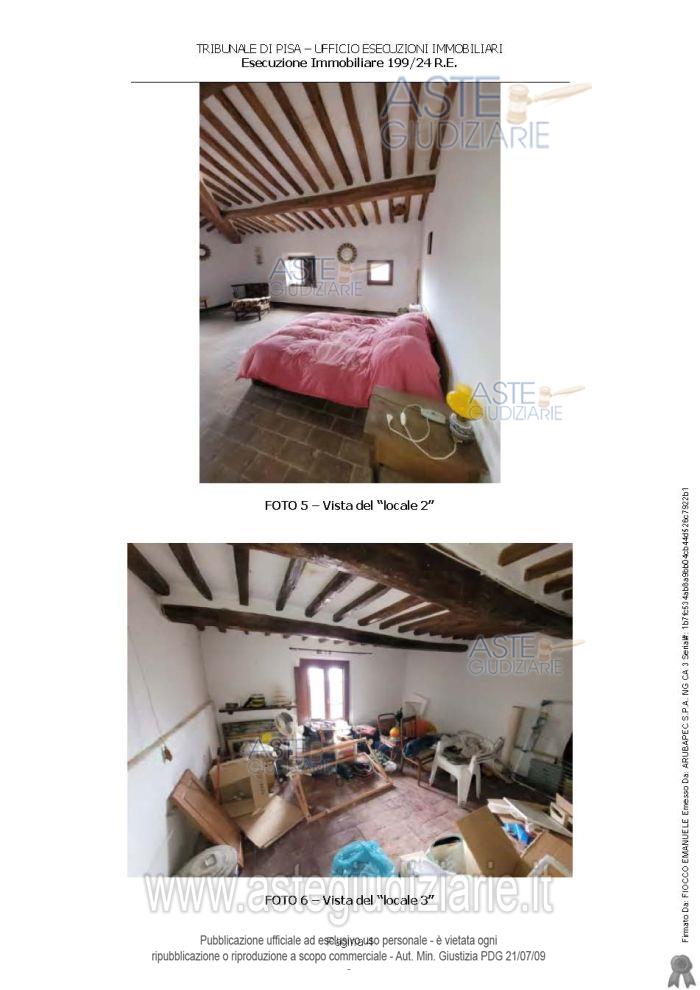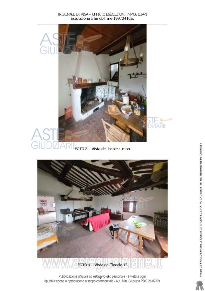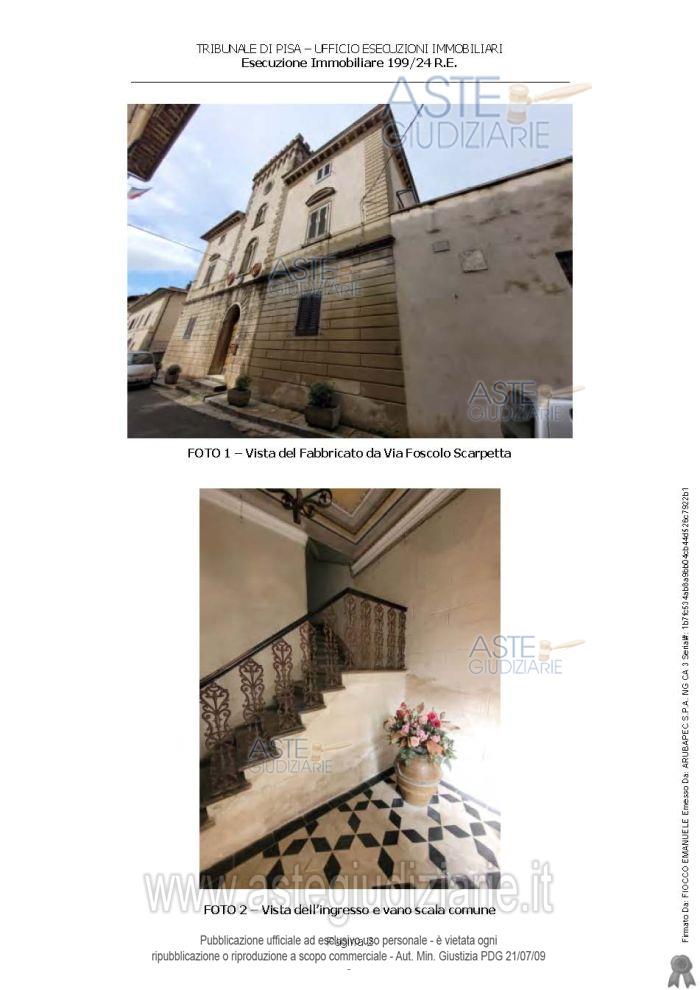 Vendita all'asta Senza incanto, con gara telematica asincrona - LOTTO UNICO: In Comune di Palaia, frazione Montefoscoli, via Foscolo Scarpetta numero civico 35, piena proprietà di appartamento per civile abitazione posto ai piani secondo e terzo di un più ampio fabbricato di vecchia costruzione. Prezzo base € 104.000,00 (offerta minima € 78.000,00). Data inizio operazioni di vendita: 15/01/2026 ore 09:30. Professionista delegato alla vendita Not. Margherita Caccetta. Custode Giudiziario Dott. Cosimo Erriquez - Email "prenotazionipisa@astagiudiziaria.com". Rif. Tribunale di Pisa - Espropriazione immobiliare (cartabia) n. 199/2024