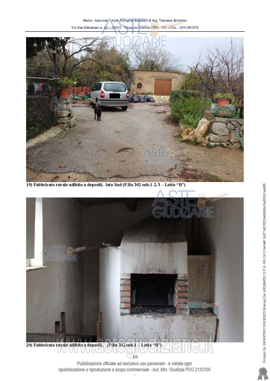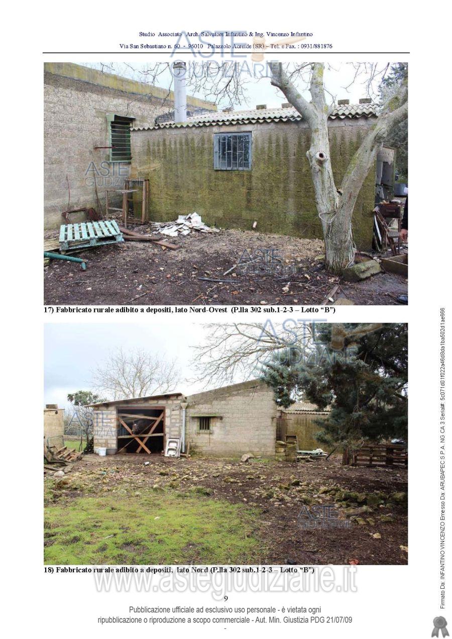 Vendita all'asta Senza incanto - LOTTO UNICO: Piena proprietà del complesso rurale sito in Palazzolo Acreide, contrada "Casa Bianca" o "Case Bianche", composto da: casa per civile abitazione di 4,5 vani catastali, in CF al f. 41, particella 124, cat. A/3, e tre unità immobiliari, destinate a deposito, in CF al f. 41, particella 302 sub. 1, cat. C/2, mq. 19, particella 302 sub. 2, cat. C/2, mq. 53, e particella 302 sub. 3, cat. C/2, mq. 29, con annesso terreno di pertinenza di are 51.76, in CT al f. 41, particella 301. Prezzo base € 27.527,35 (offerta minima € 20.645,51). Data vendita 06/03/2026 ore 12:00. Giudice Maria Cristina Di Stazio. Professionista delegato alla vendita Avv. Valentina Bonfiglio - Email "valentinabonfiglio1976@gmail.com"; Cell. 3394247555; Tel. 3394247555. Custode Giudiziario Avv. Valentina Bonfiglio - Email "valentinabonfiglio1976@gmail.com"; Cell. 3394247555; Tel. 3394247555. Rif. Tribunale di Siracusa - Esecuzione immobiliare post legge 80 n. 133/2014