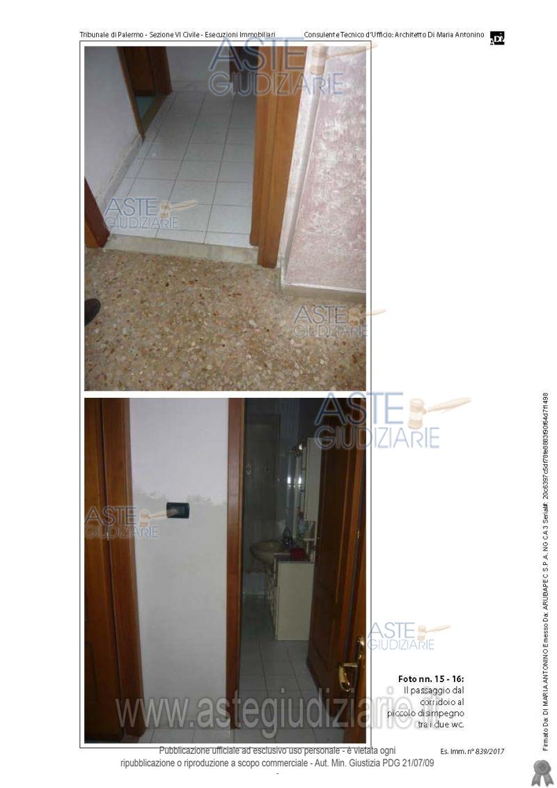Vendita in attesa dell'emissione del nuovo bando d'asta. LOTTO UNICO: Appartamento in Palermo, Via Sanfilippo n. 15, al foglio 72 particella 613 sub 14 cat A/3 classe 6, vani 8, mq 135 rendita catastale €454,48. Ultimo prezzo base € 69.468,75 (offerta minima € 52.101,56). Professionista delegato alla vendita Avv. Elma Mangione - Email "avv.elmamangione@gmail.com"; Tel. 091303147. Custode Giudiziario Avv. Elma Mangione - Email "avv.elmamangione@gmail.com"; Tel. 091303147. Rif. Tribunale di Palermo - Esecuzione immobiliare post legge 80 n. 839/2017