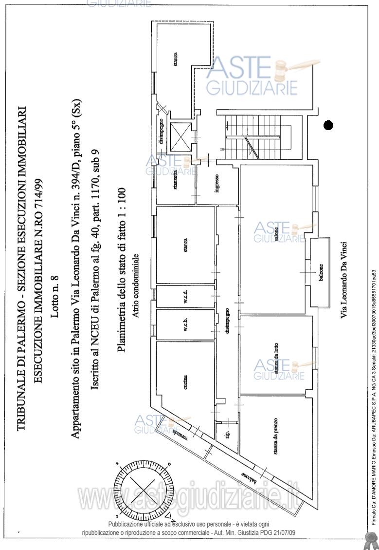 Vendita all'asta Senza incanto, con gara telematica sincrona mista - LOTTO 8:  Immobile sito in Palermo, via Leonardo Da Vinci n. 394/D, piano quinto. Prezzo base € 127.000,00 (offerta minima € 95.250,00). Data vendita 06/11/2025 ore 13:30. Professionista delegato alla vendita Avv. Marzia Siracusa - Email "infovenditedelegate@gmail.com"; Tel. 0916256095. Custode Giudiziario  Avv. Marzia Siracusa - Email "infovenditedelegate@gmail.com"; Tel. 0916256095.  Rif. Tribunale di Palermo - Esecuzione immobiliare post legge 80 n. 714/1999