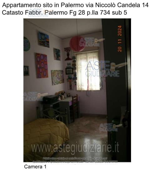 Vendita all'asta Senza incanto, con gara telematica sincrona mista - LOTTO UNICO: Appartamento di civile abitazione sito in Palermo via Niccolò Candela n.14, posto al piano primo a sinistra salendo le scale. L’appartamento è composto da salone pari a due vani, 3 camere, wc bagno, cucina abitabile, 2 balconi rispettivamente sui fronti nord e sud. L’immobile è identificato al C. F. del Comune di Palermo, al foglio 28, particella 734, sub. 5, cat. A/3, consistenza 5,5 vani, superficie catastale totale 121 mq, totale escluse aree scoperte 114 mq, rendita euro 267,01. Prezzo base € 89.700,00 (offerta minima € 67.275,00). Data vendita 20/11/2025 ore 15:45. Professionista delegato alla vendita Avv. Maria Rosaria Cecala - Email "mariarosaria.cecala@gmail.com"; Tel. 091306037. Custode Giudiziario Avv. Maria Rosaria Cecala - Email "mariarosaria.cecala@gmail.com"; Tel. 091306037. Rif. Tribunale di Palermo - Esecuzione immobiliare post legge 80 n. 163/2023