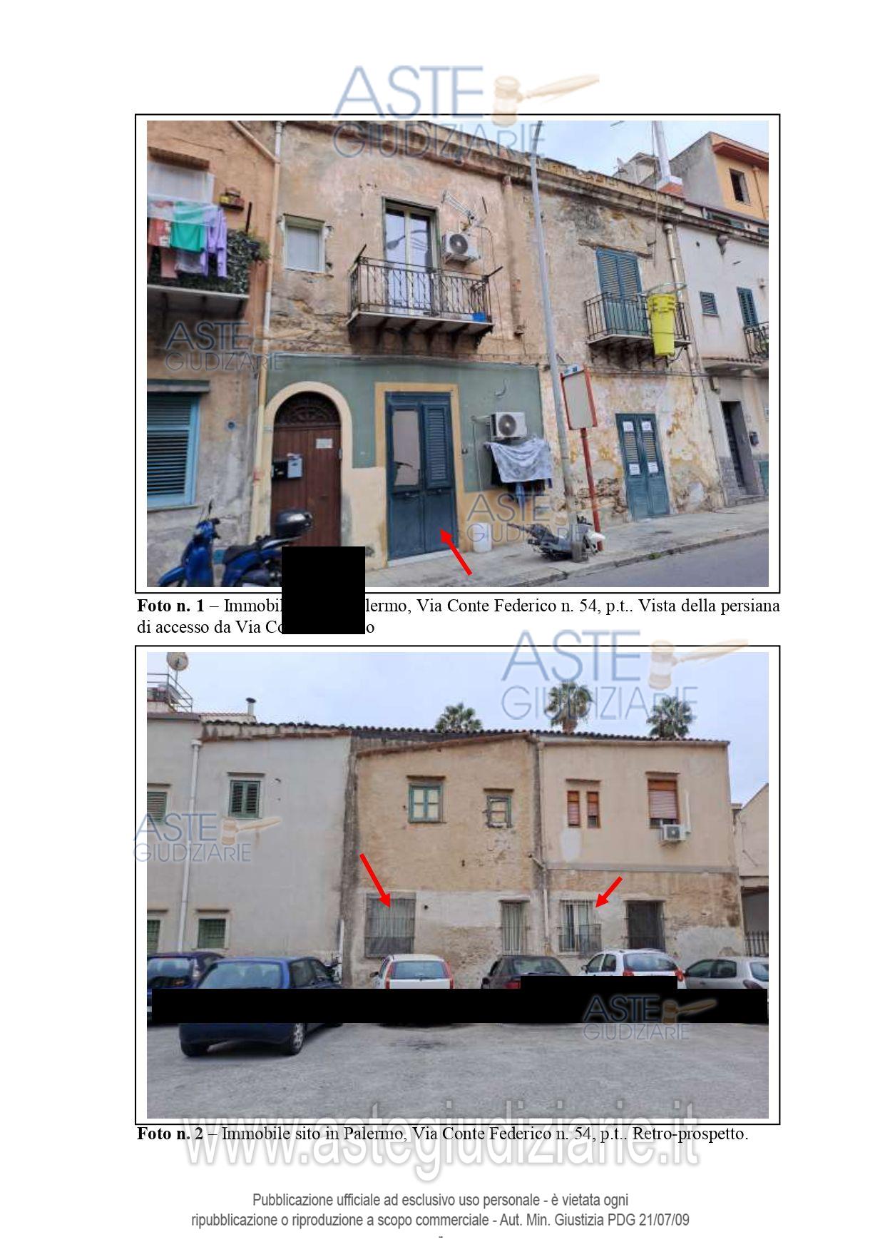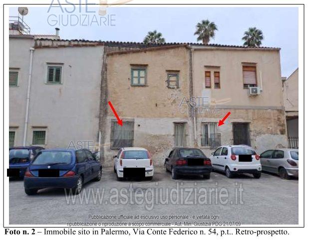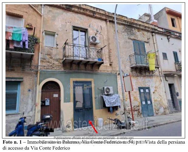 Vendita all'asta Senza incanto, con gara telematica sincrona mista - LOTTO UNICO: Piena proprietà appartamento non in condominio in Palermo, via Conte Federico n. 54, composto da p. t. e p.1. Manutenzione mediocre/scadente, privo di impianto di riscaldamento, composto da cucina-soggiorno, camera da letto, ripostiglio in sottoscala, piccolo disimpegno, w.c. e cameretta, Censito al C.F. al foglio 88, p.lla 245, sub. 2, categoria catastale A/4, zona censuaria 2, cl.4, consistenza 2,5 vani, superficie catastale mq 57, rendita catastale euro 63,27. Prezzo base € 14.100,00 (offerta minima € 10.575,00). Data vendita 17/12/2025 ore 15:30. Professionista delegato alla vendita Avv. Salvatore Leto - Email "avv.salvoleto@gmail.com"; Cell. 3392194201; Tel. 3392194201. Custode Giudiziario Avv. Salvatore Leto - Email "avv.salvoleto@gmail.com"; Cell. 3392194201; Tel. 3392194201. Rif. Tribunale di Palermo - Esecuzione immobiliare post legge 80 n. 435/2023