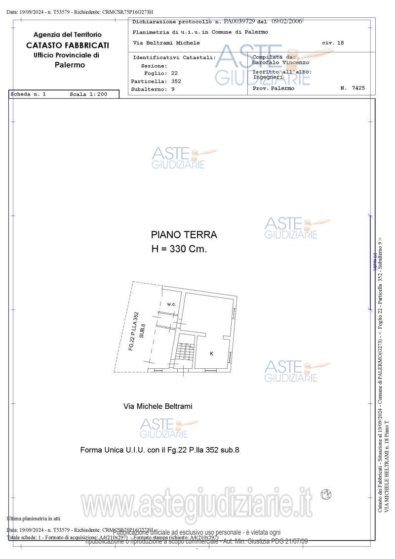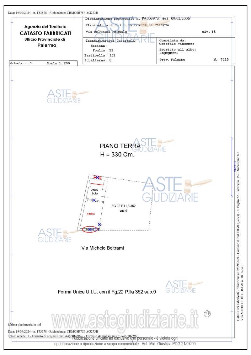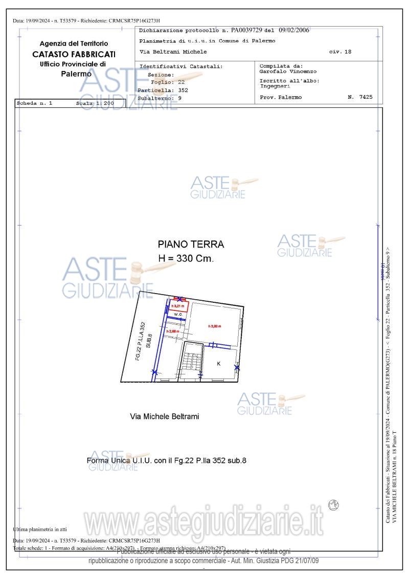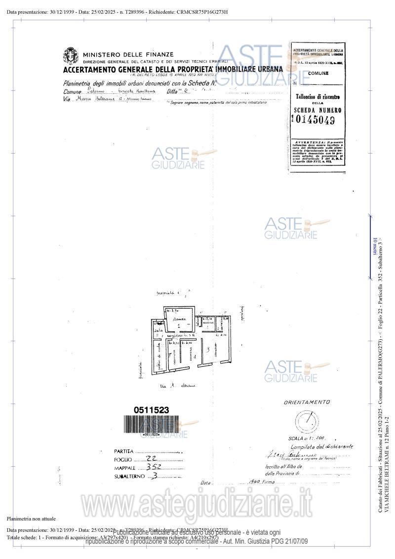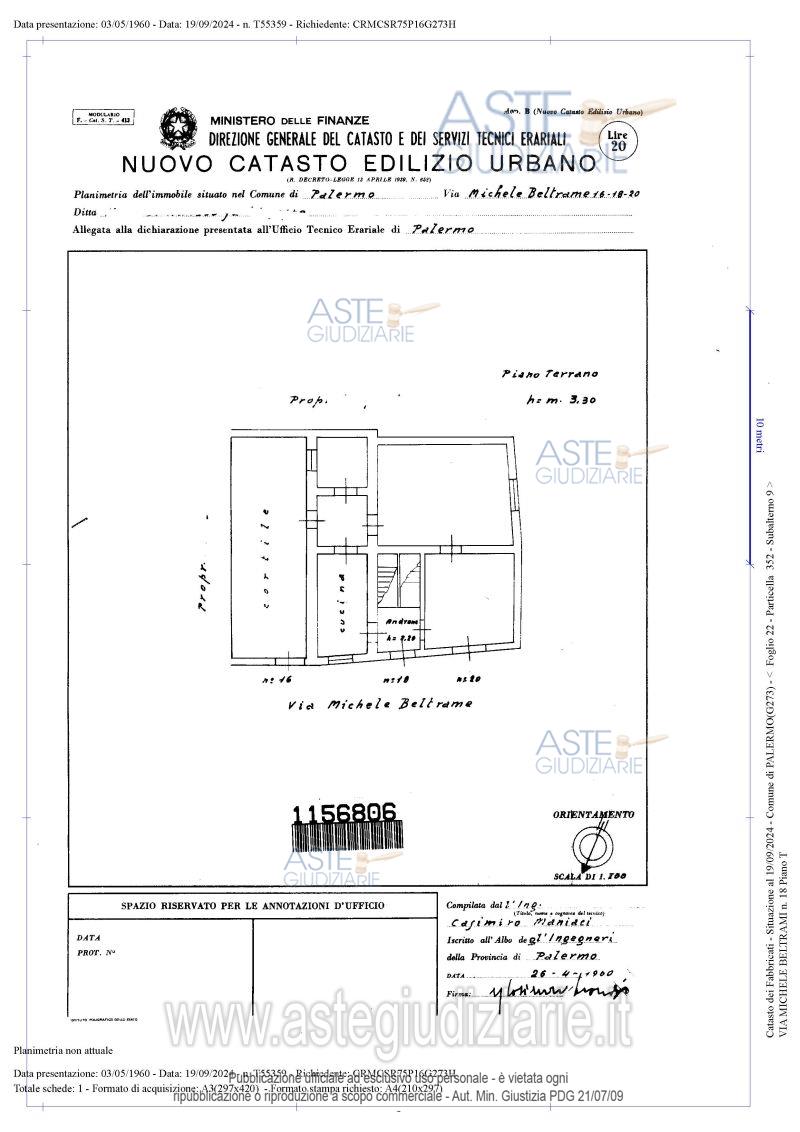 Vendita all'asta Senza incanto, con gara telematica sincrona mista - LOTTO UNICO: immobile di tipo residenziale, ubicato in Palermo, via Michele Beltrami n. 18, piano terra, composto catastalmente da quattro vani, di fatto da 2 camere da letto, ingresso-disimpegno, soggiorno, cucina abitabile, 1 servizio igienico, per una superficie commerciale di circa 72 mq. e una superficie netta di circa 48 mq. Prezzo base € 54.100,00 (offerta minima € 40.575,00). Data vendita 04/11/2025 ore 10:00. Professionista delegato alla vendita Avv. Calogero Pisciotta - Email "pisciotta.avvocato@gmail.com". Custode Giudiziario Avv. Calogero Pisciotta - Email "pisciotta.avvocato@gmail.com". Rif. Tribunale di Palermo - Espropriazione immobiliare (cartabia) n. 547/2023
