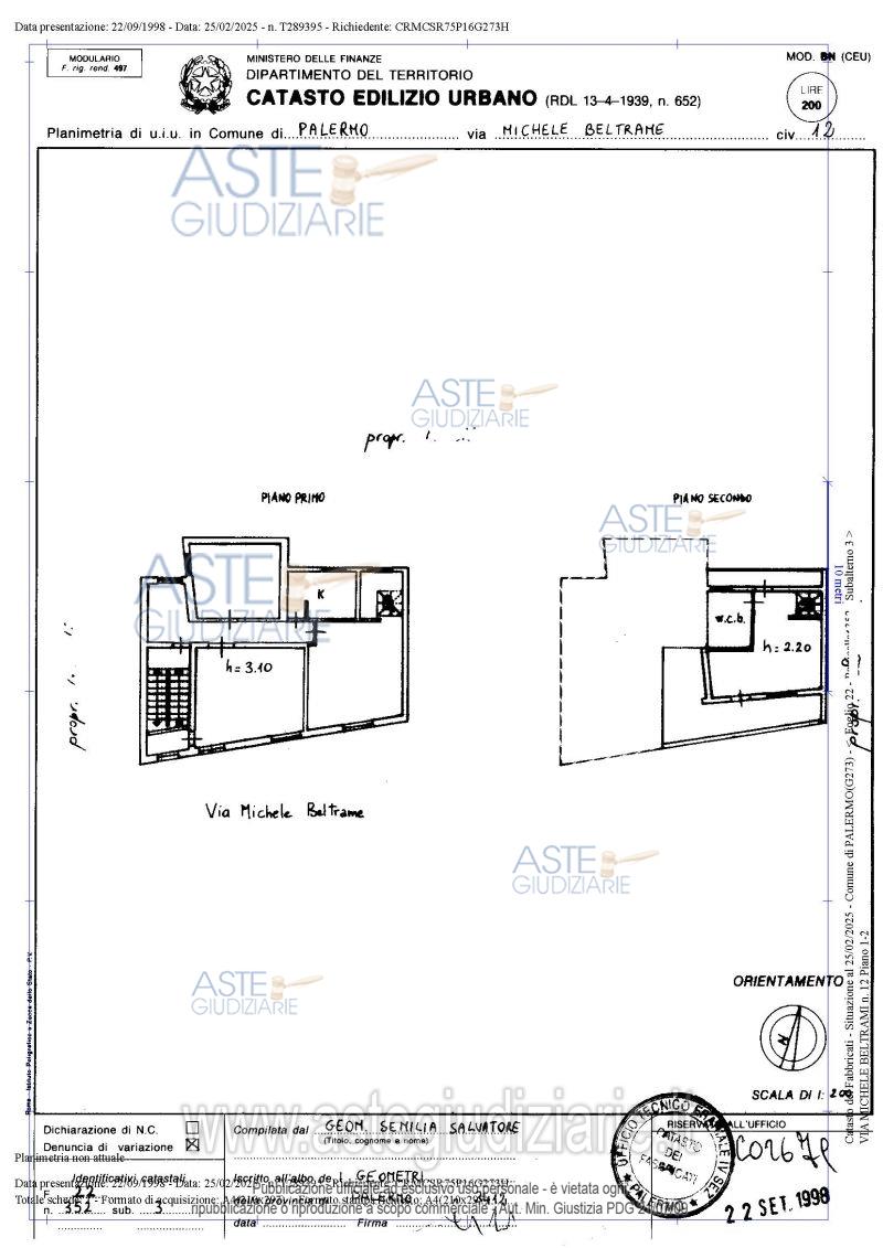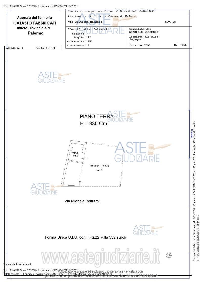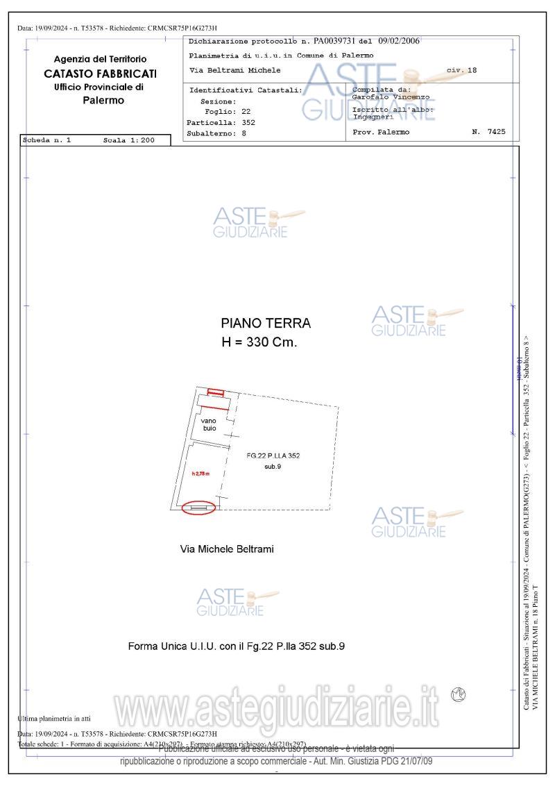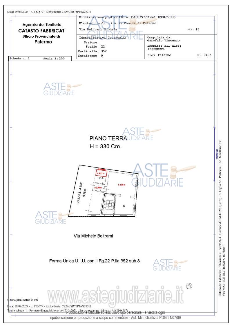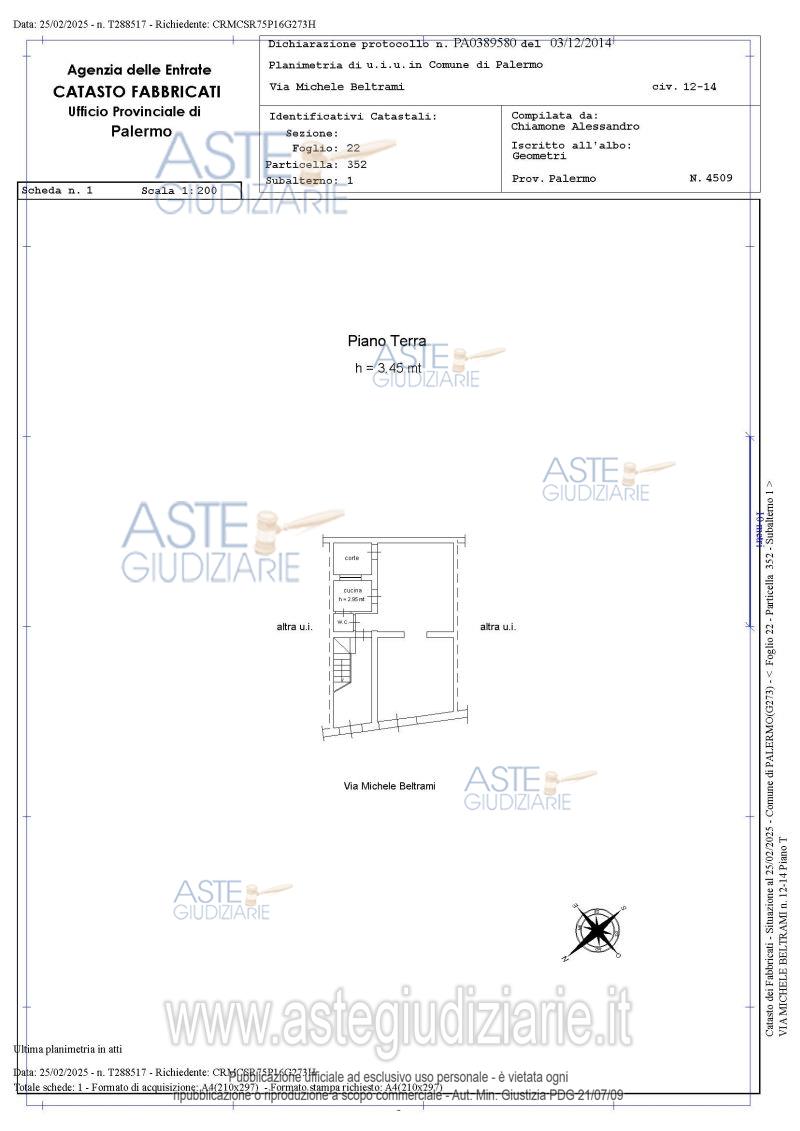 Vendita all'asta Senza incanto, con gara telematica sincrona mista - LOTTO UNICO: immobile di tipo residenziale, ubicato in Palermo, via Michele Beltrami n. 18, piano terra, composto catastalmente da quattro vani, di fatto da 2 camere da letto, ingresso-disimpegno, soggiorno, cucina abitabile, 1 servizio igienico, per una superficie commerciale di circa 72 mq. e una superficie netta di circa 48 mq. Prezzo base € 54.100,00 (offerta minima € 40.575,00). Data vendita 04/11/2025 ore 10:00. Professionista delegato alla vendita Avv. Calogero Pisciotta - Email "pisciotta.avvocato@gmail.com". Custode Giudiziario Avv. Calogero Pisciotta - Email "pisciotta.avvocato@gmail.com". Rif. Tribunale di Palermo - Espropriazione immobiliare (cartabia) n. 547/2023