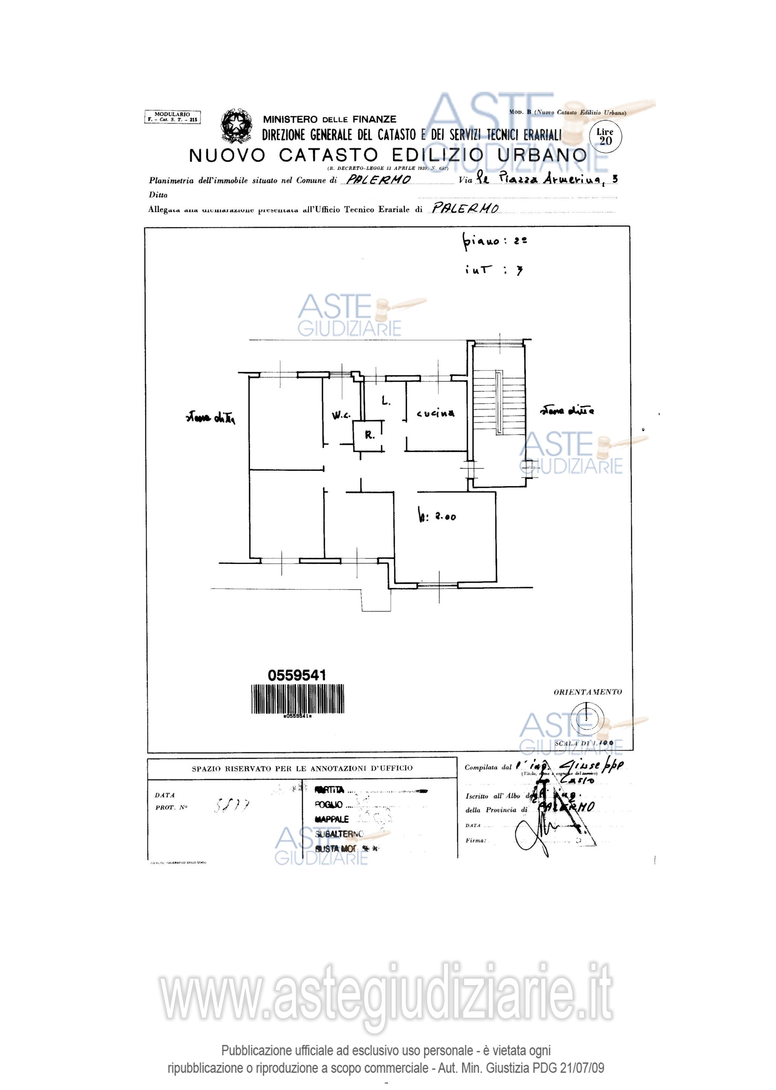 Vendita all'asta Senza incanto, con gara telematica sincrona mista - LOTTO UNICO: piena proprietà di unità immobiliare sita nel Comune di Palermo (PA) viale Piazza Armerina, n.5, ubicato al piano 3, censito al C.F. del Comune di Palermo al foglio 38, p.lla 2583, sub. 5, categoria catastale A/4, numero vani catastali 7, superficie catastale 105 m2 - Rendita catastale euro 206,07.L’appartamento è costituito da ingresso, soggiorno prospicente Viale Piazza Armerina, cucina con accesso alla veranda, corridoio, un servizio igienico con vasca, tre camere da letto di cui una matrimoniale. Prezzo base € 55.518,75 (offerta minima € 41.639,07). Data vendita 16/04/2026 ore 10:15. Professionista delegato alla vendita Avv. Giorgio Gambino - Email "giorgiogambino692@gmail.com"; Cell. 3391634994. Custode Giudiziario Avv. Giorgio Gambino - Email "giorgiogambino692@gmail.com"; Cell. 3391634994. Rif. Tribunale di Palermo - Espropriazione immobiliare (cartabia) n. 239/2023