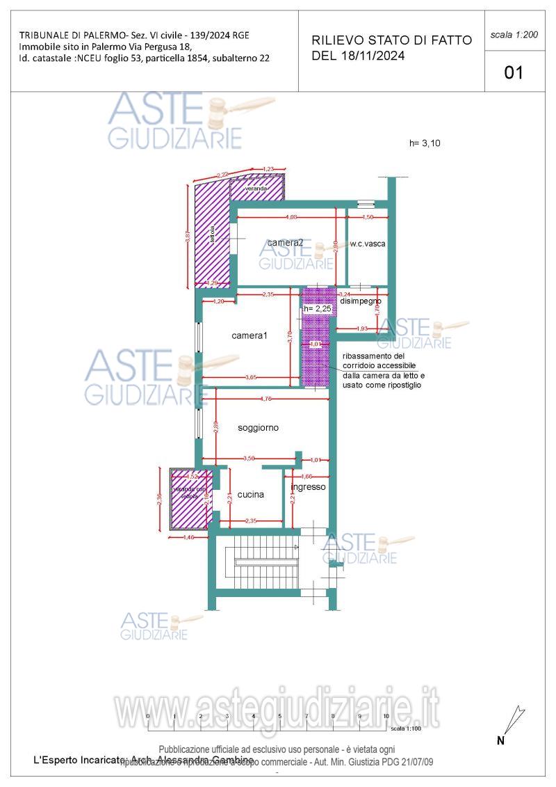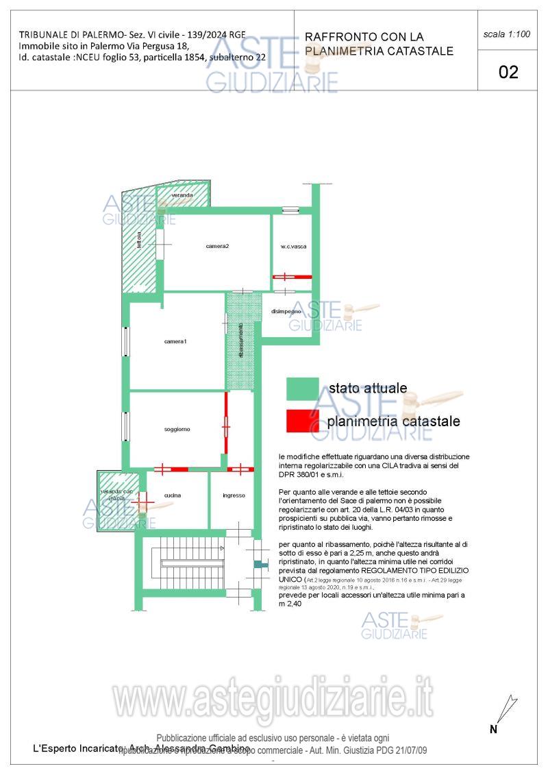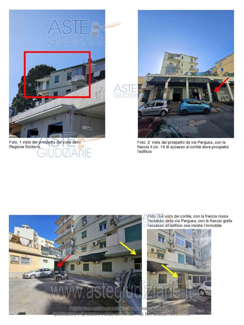 Vendita all'asta Senza incanto, con gara telematica sincrona mista - LOTTO UNICO: LOTTO UNICO: appartamento in Palermo, Via Pergusa n. 18, piano 4° a sx salendo la scala, senza ascensore; composto da ingresso, soggiorno/pranzo, cucina in muratura, veranda adiacente, corridoio/disimpegno due camere da letto di cui una con balcone e w.c. con vasca.; superficie commerciale di 74,88 mq. circa. Catasto Fabbricati del Comune di Palermo al Foglio 53, particella 1854, sub. 22, cat. A/2;OCCUPATO DAI DEBITORI ESECUTATI. Prezzo base € 61.714,50 (offerta minima € 46.285,88). Data vendita 22/05/2026 ore 11:00. Professionista delegato alla vendita Avv. Laura Galasso - Email "info@dagape.it"; Cell. 3896777421; Tel. 091322911. Custode Giudiziario Avv. Laura Galasso - Email "info@dagape.it"; Cell. 3896777421; Tel. 091322911. Rif. Tribunale di Palermo - Espropriazione immobiliare (cartabia) n. 139/2024