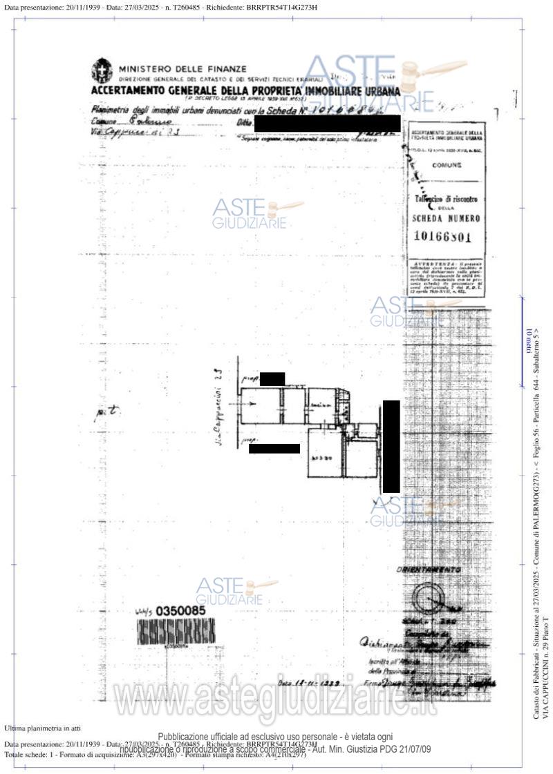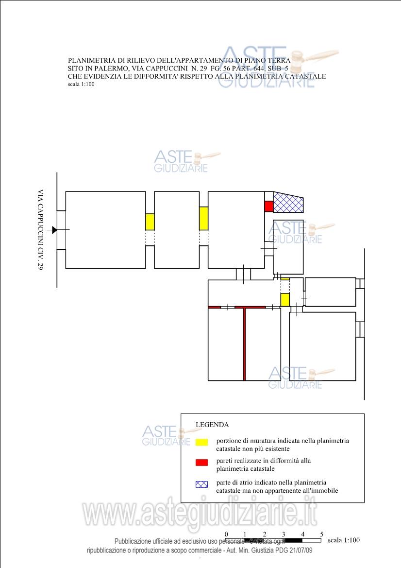 Vendita all'asta Senza incanto, con gara telematica sincrona mista - LOTTO UNICO: Piena proprietà di un appartamento, sito in Palermo, via Cappuccini n. 29, piano terra con accesso diretto dalla strada. Si compone di 5 camere, una cucina, un servizio igienico ed un locale lavanderia collocato in uno spazio destinato ad atrio coperto con struttura metallica e vetro retinato. Prezzo base € 52.680,00 (offerta minima € 39.510,00). Data vendita 05/03/2026 ore 09:30. Giudice Dott. Maria Cristina La Barbera. Professionista delegato alla vendita Avv. Valentina Spera - Email "valentina.spera@virgilio.it"; Cell. 3334121271. Custode Giudiziario Avv. Valentina Spera - Email "valentina.spera@virgilio.it"; Cell. 3334121271. Rif. Tribunale di Palermo - Esecuzione immobiliare post legge 80 n. 469/2023
