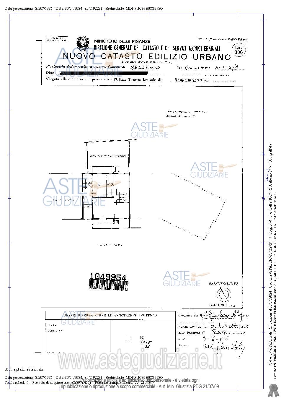 Vendita all'asta Senza incanto, con gara telematica sincrona mista - LOTTO UNICO: Piena proprietà appartamento per civile abitazione, ubicato nel Comune di Palermo, Via Galletti n. 257/D, Scala D, Interno 1, Piano Terra, censito al N.C.E.U. del Comune di Palermo al Foglio 94, P.lla 1065, Sub. 24, P.lla 1067 Sub. 9 e P.lla 1067 Sub. 27 (graffate), Zona Censuaria 2, Categoria catastale A/3. Prezzo base € 80.000,00 (offerta minima € 60.000,00). Data vendita 19/03/2026 ore 17:00. Professionista delegato alla vendita Avv. Giovanni Troja - Email "assoveda@gmail.com". Custode Giudiziario Avv. Giovanni Troja - Email "assoveda@gmail.com". Rif. Tribunale di Palermo - Esecuzione immobiliare post legge 80 n. 81/2023