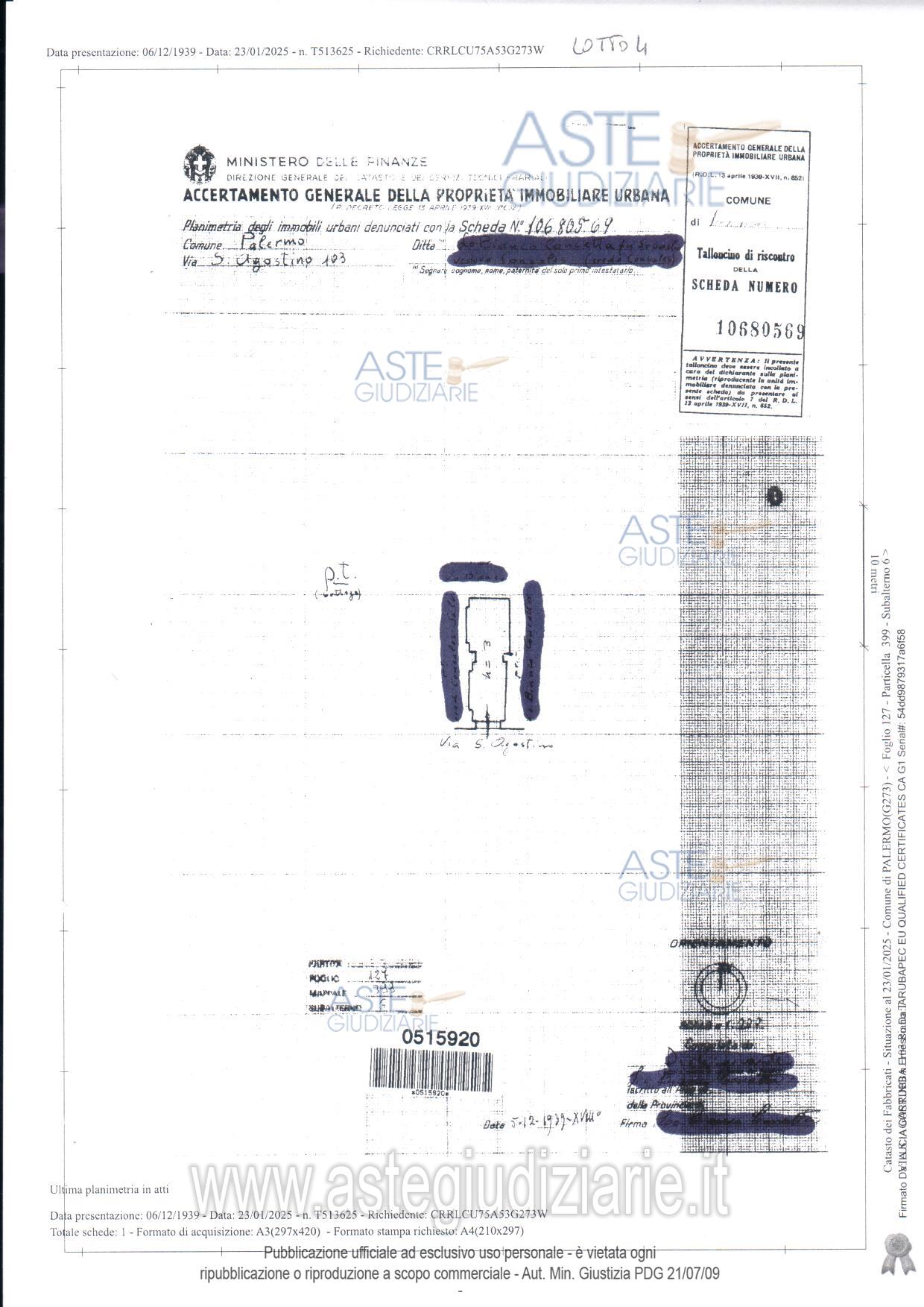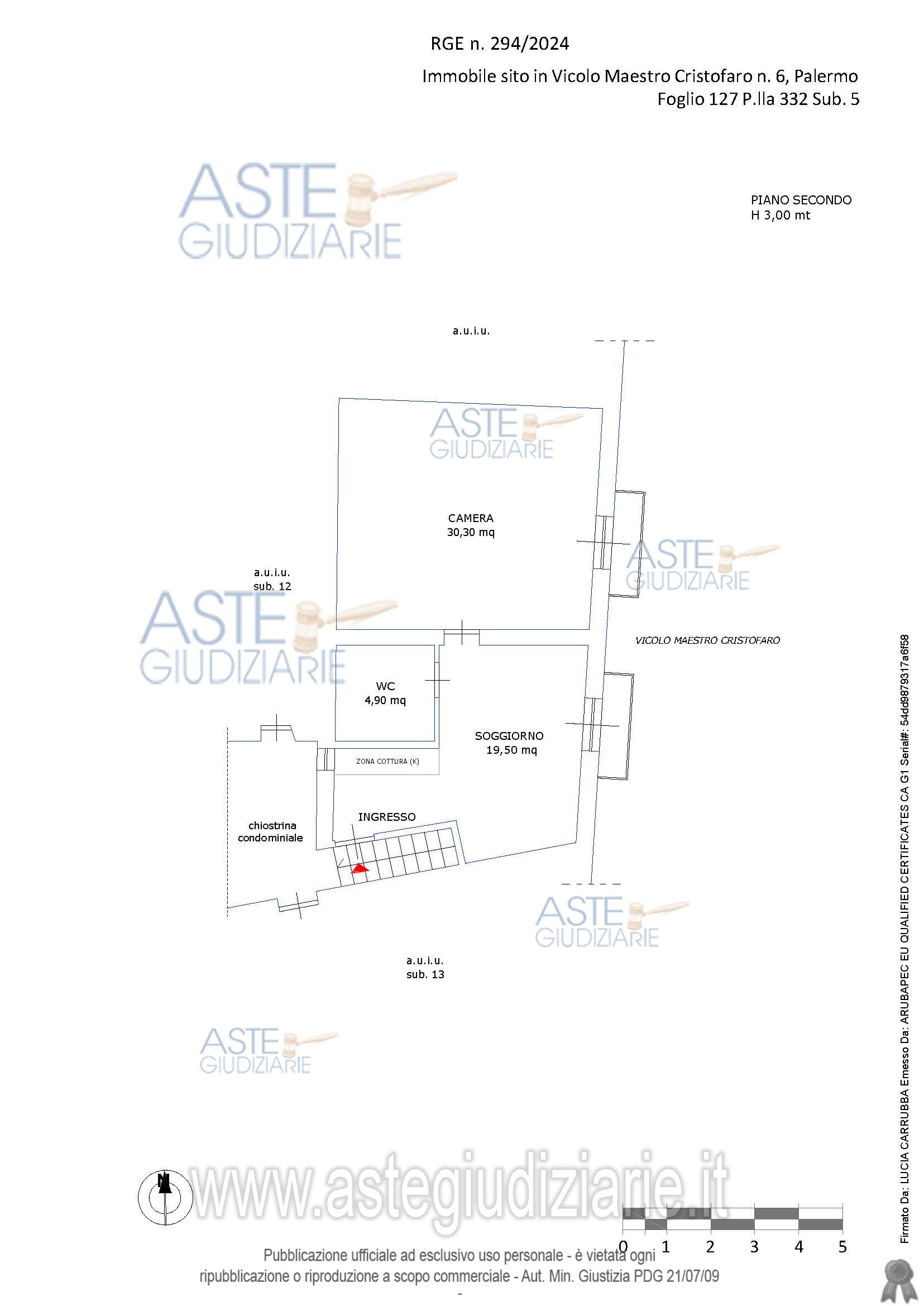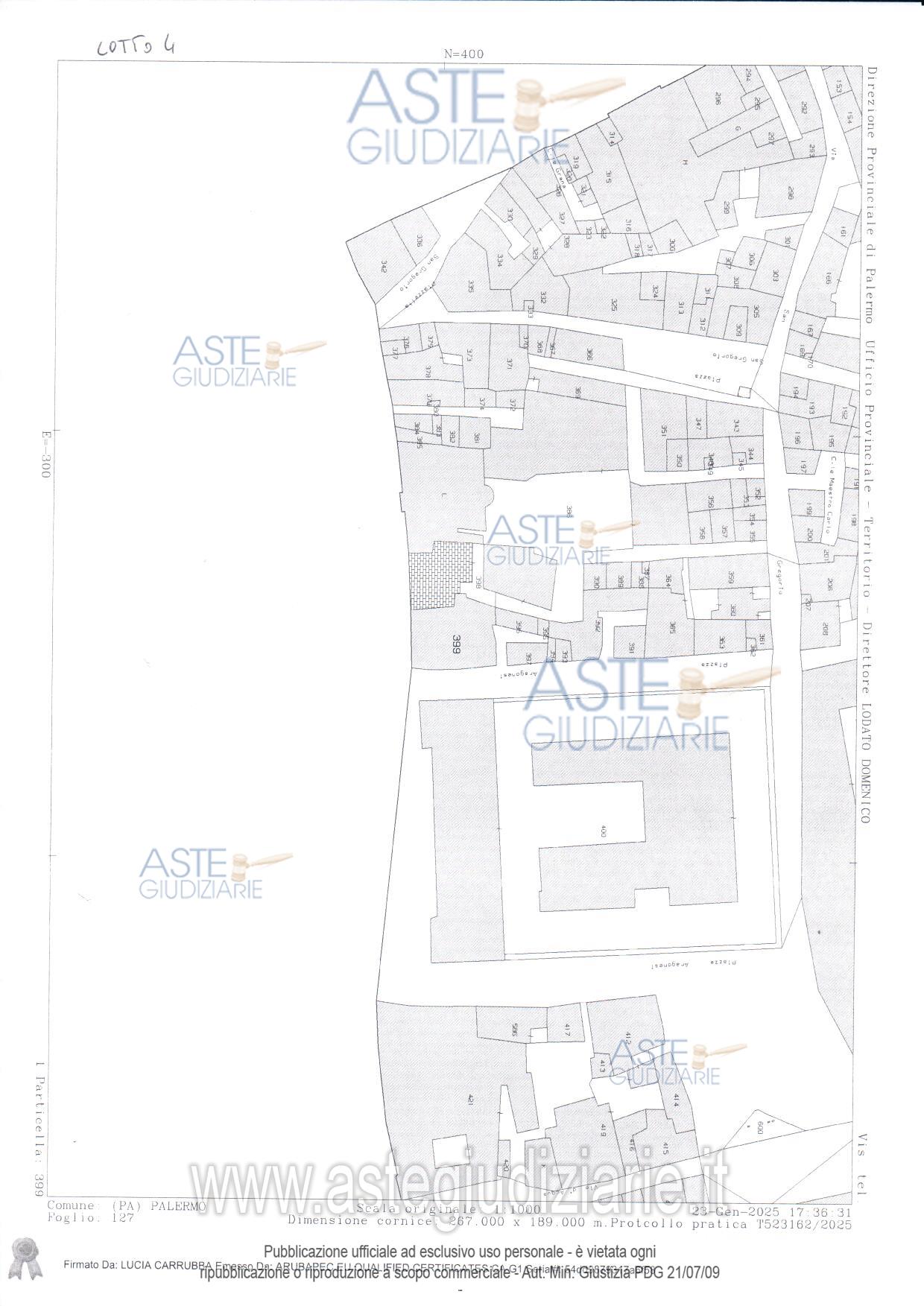 Vendita all'asta Senza incanto, con gara telematica sincrona mista - LOTTO 2: LOTTO DUE: - piena proprietà dell’immobile sito in Palermo, Vicolo Maestro Cristofaro n. 6, piano 2, censito al C.F. del Comune di Palermo, al fg.127, p.lla 332, sub. 5, zona 1, cat. catastale A/4, classe 3, consistenza 4,5 vani, superficie catastale 69 mq escluse aree scoperte 68 mq, rendita € 134,80. Prezzo base € 78.000,00 (offerta minima € 58.500,00). Data vendita 21/04/2026 ore 10:00. Professionista delegato alla vendita Avv. Lorenzo Lo Verso - Email "lorenzo.loverso@libero.it"; Cell. 3317114606; Tel. 091516903. Custode Giudiziario Avv. Lorenzo Lo Verso - Email "lorenzo.loverso@libero.it"; Cell. 3317114606; Tel. 091516903. Rif. Tribunale di Palermo - Espropriazione immobiliare (cartabia) n. 294/2024