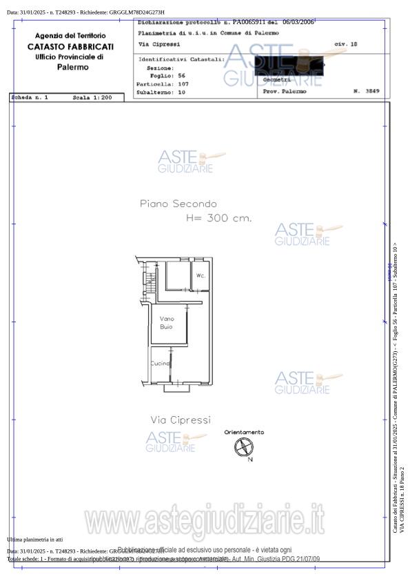 Vendita all'asta Senza incanto, con gara telematica sincrona mista - LOTTO 2: abitazione di tipo popolare, sita in Palermo, Via Cipressi n. 18, ubicata al piano secondo. Prezzo base € 29.725,50 (offerta minima € 22.294,13). Data vendita 21/05/2026 ore 10:30. Professionista delegato alla vendita Avv. Davide Garretto - Email "avv.garretto.aste@virgilio.it". Custode Giudiziario Avv. Davide Garretto - Email "avv.garretto.aste@virgilio.it". Rif. Tribunale di Palermo - Espropriazione immobiliare (cartabia) n. 401/2023