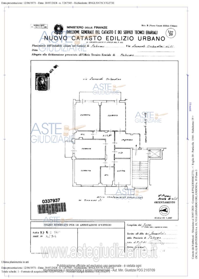 Vendita all'asta Senza incanto, con gara telematica sincrona mista - LOTTO 1: quota indivisa di 11/12 della piena proprietà dell’appartamento sito nel Comune di Palermo, via Leonardo Orlandino n. 19, piano terzo, di superficie commerciale complessiva di mq 126,37; identificato in Catasto dei Fabbricati del detto Comune al foglio 30, particella 1566 sub 19, categoria A/2, classe 7, consistenza 6,5 vani, rendita € 419,62. Prezzo base € 137.000,00 (offerta minima € 102.750,00). Data vendita 29/05/2026 ore 09:30. Giudice Valentina Imperiale. Professionista delegato alla vendita Avv. Marina Vajana - Email "avvmvajana.esecuzioni@gmail.com"; Tel. 091300764. Custode Giudiziario Avv. Giovanni Barresi - Email "assoveda@gmail.com"; Tel. 091335768. Rif. Tribunale di Palermo - Esecuzione immobiliare post legge 80 n. 98/1997