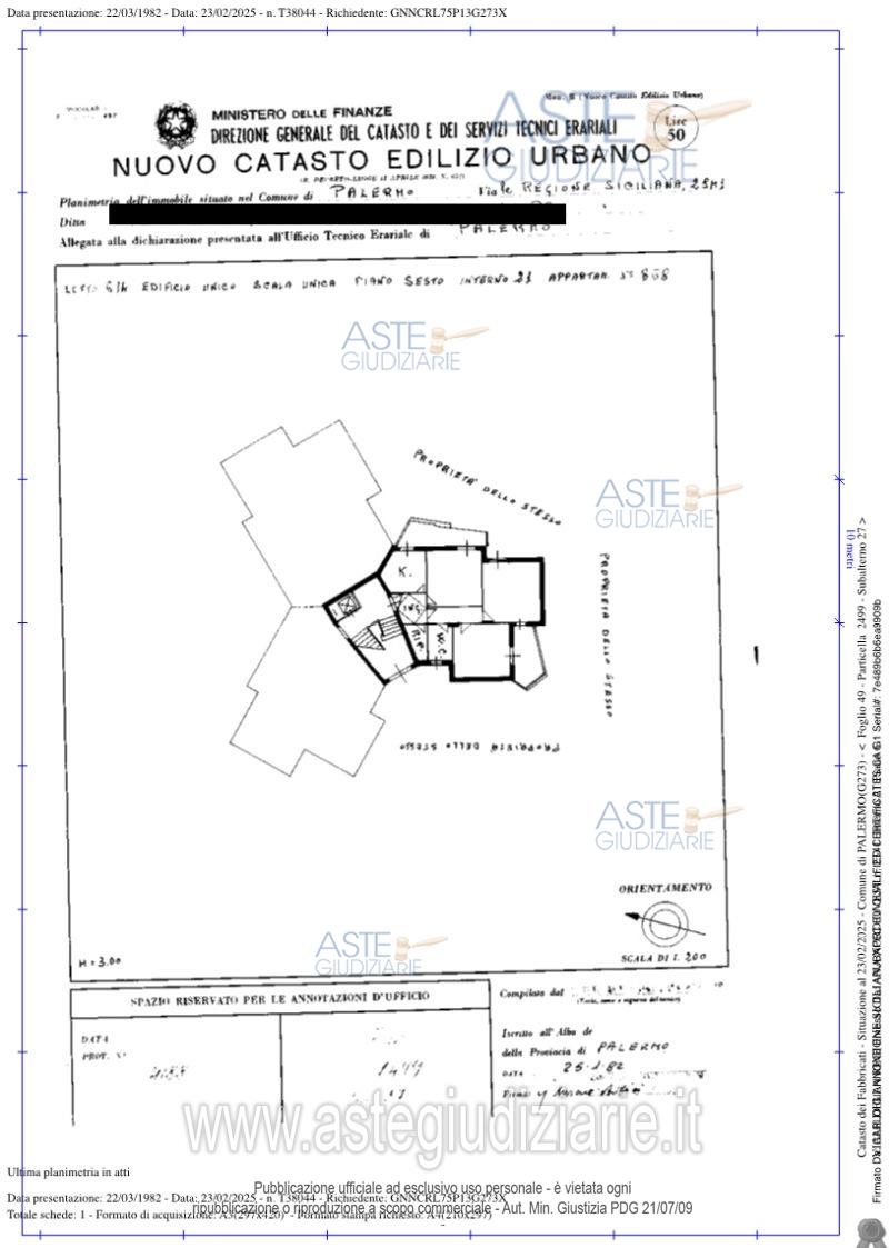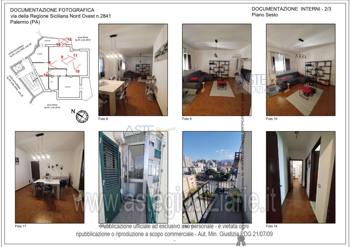 Vendita all'asta Senza incanto, con gara telematica sincrona mista - LOTTO 0: Piena proprietà dell’appartamento posto al piano sesto di un fabbricato e censito al Catasto Fabbricati di Palermo al foglio 49, particella 2499, sub 27, piano 6, cat. A/3, cl.7, consistenza 5,5 vani, composto da ingresso, disimpegno centrale, cucina con annessa zona verandata, ampio soggiorno, corridoio, camera con balcone, wc e ripostigli. Prezzo base € 153.000,00 (offerta minima € 114.750,00). Data vendita 12/05/2026 ore 16:00. Giudice Dott. Valentina Imperiale. Professionista delegato alla vendita Avv. Valentina Dina - Email "valentinadina@hotmail.it"; Tel. 0915089482. Custode Giudiziario Avv. Valentina Dina - Email "valentinadina@hotmail.it"; Tel. 0915089482. Rif. Tribunale di Palermo - Esecuzione immobiliare post legge 80 n. 566/2024