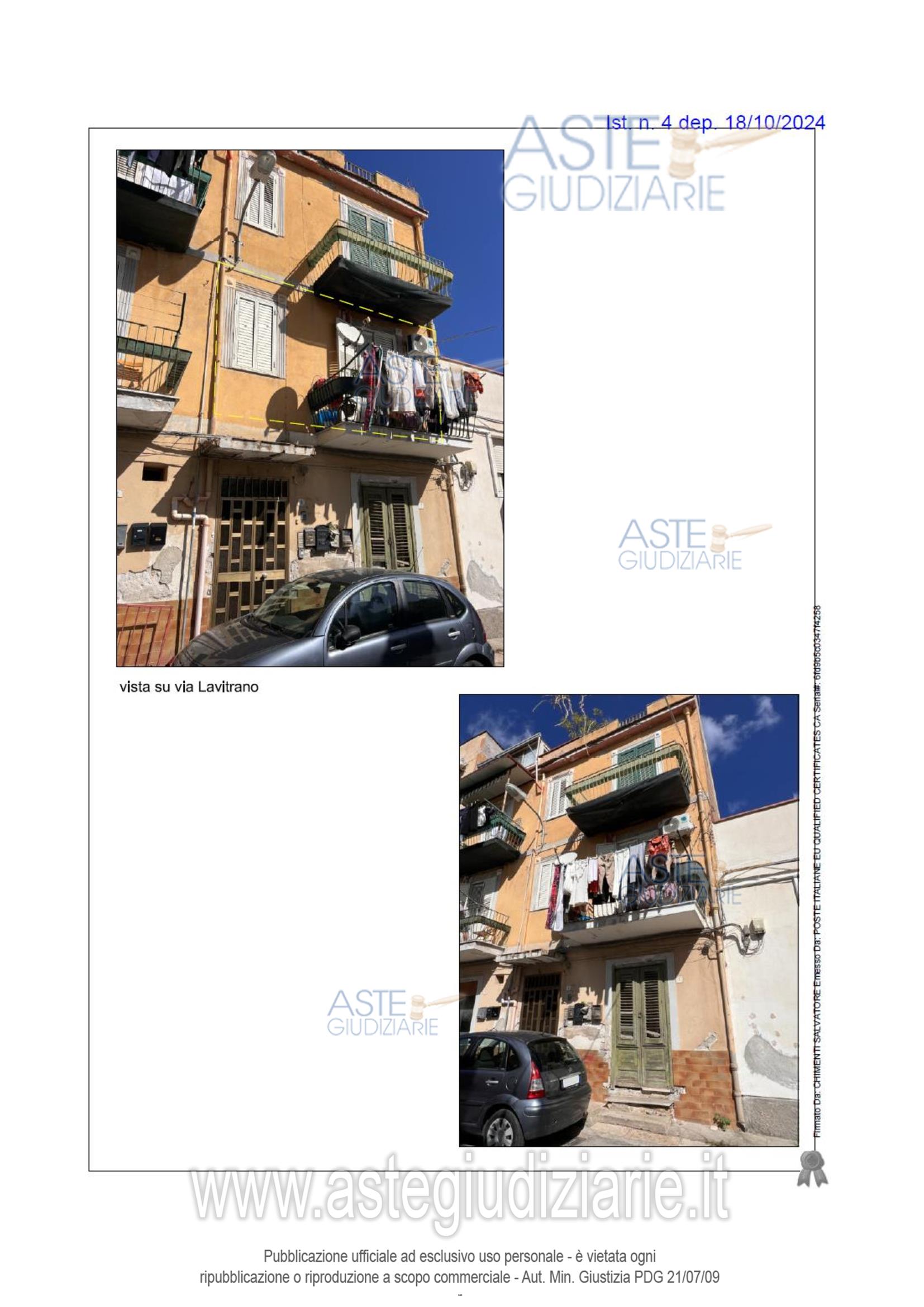 Vendita all'asta Senza incanto, con gara telematica sincrona mista - LOTTO UNICO: Piena proprietà di appartamento per civile abitazione di tipo popolare facente parte di edificio a più elevazioni f.t., sito in Palermo, Via Cardinale Luigi Lavitrano n. 9, ubicato al piano primo. Prezzo base € 25.200,00 (offerta minima € 18.900,00). Data vendita 05/06/2026 ore 11:00. Professionista delegato alla vendita Avv. Giuseppina Lacca - Email "esecuzionipalermo@gmail.com"; Tel. 0917303140. Custode Giudiziario Avv. Giuseppina Lacca - Email "esecuzionipalermo@gmail.com"; Tel. 0917303140. Rif. Tribunale di Palermo - Esecuzione immobiliare post legge 80 n. 88/2023