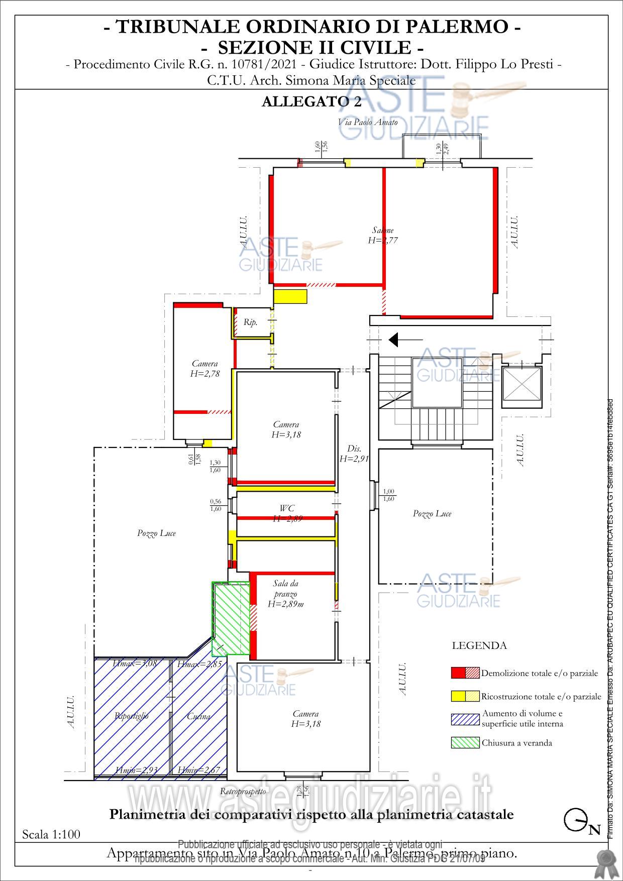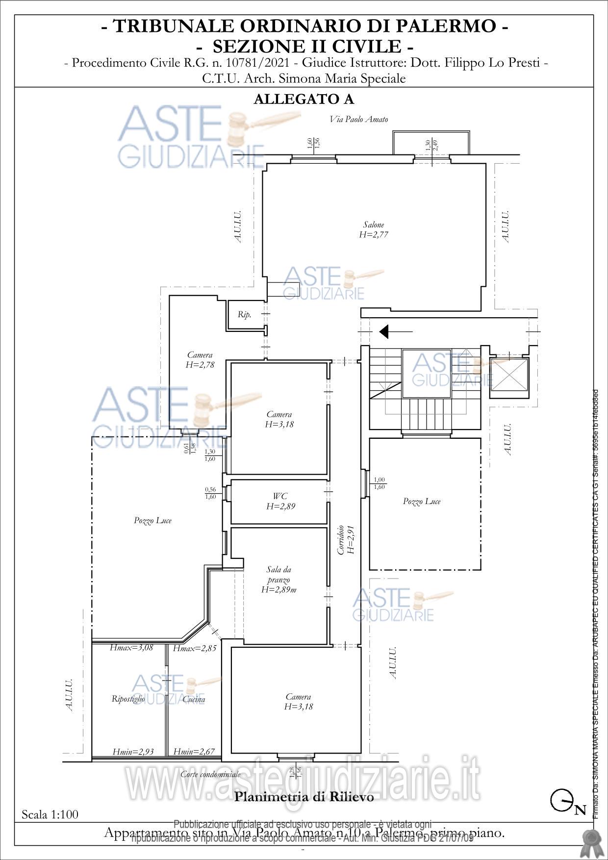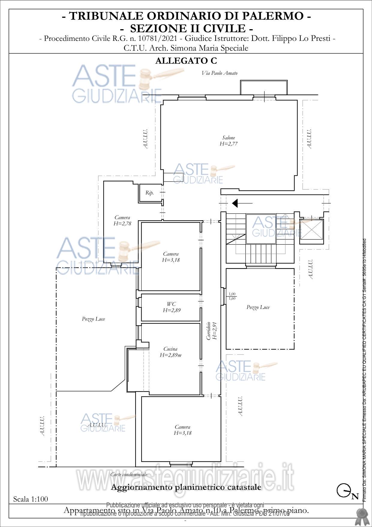 Vendita all'asta Senza incanto, con gara telematica sincrona mista - LOTTO UNICO: piena proprietà di appartamento (cat. A/2) sito in Palermo, via Paolo Amato n. 10, piano primo, interno 4. Prezzo base € 132.730,46 (offerta minima € 99.547,85). Data vendita 24/06/2026 ore 14:00. Professionista delegato alla vendita Avv. Davide Garretto - Email "avv.garretto.aste@virgilio.it". Rif. Tribunale di Palermo - Volontaria giurisdizione n. 5570/2025