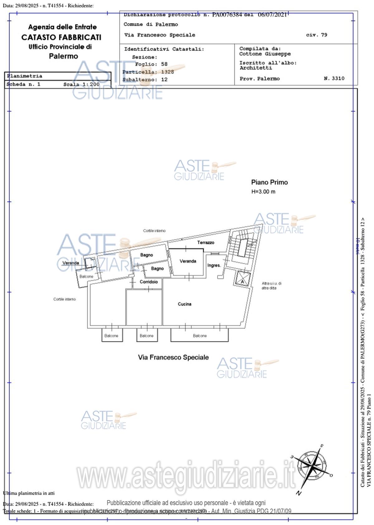 Professionista delegato alla vendita: Avv. Giuseppe Serio - Email "avv.giuserio@gmail.com"; Tel. 091/5089482.