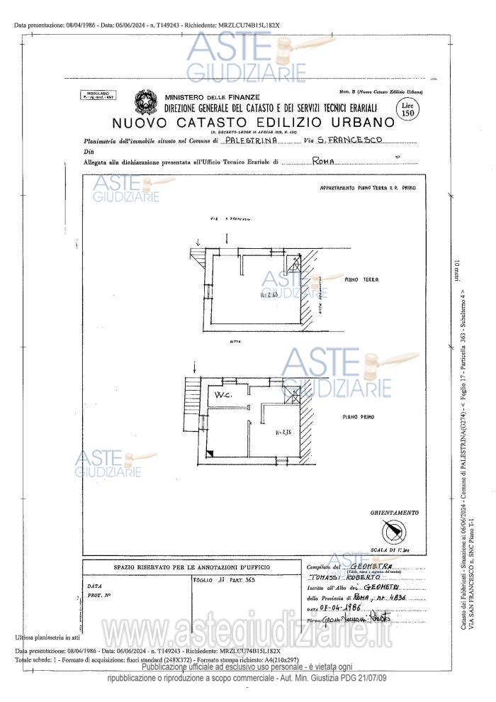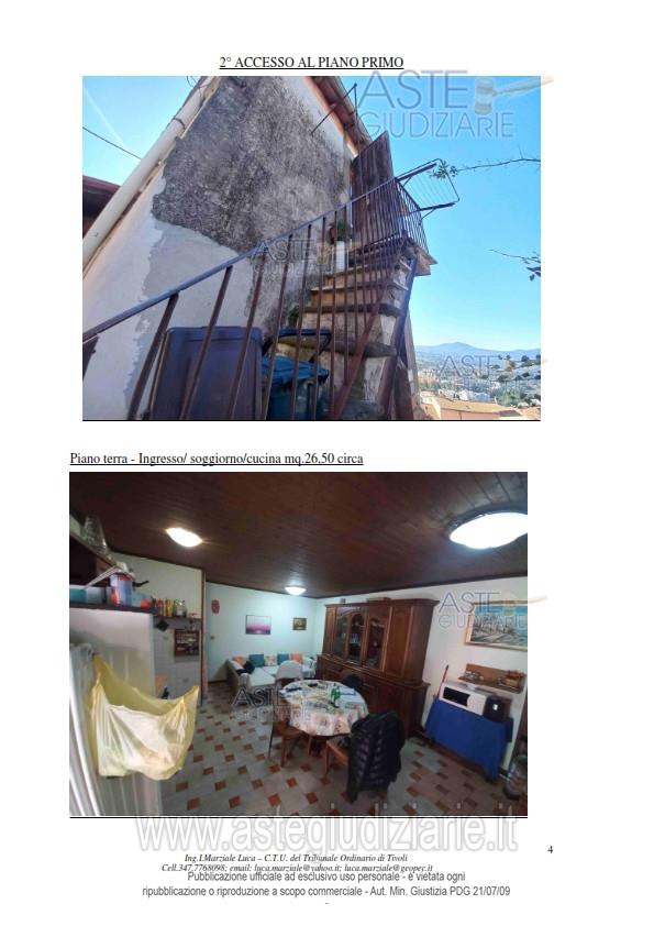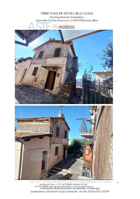 Vendita all'asta Senza incanto, con gara telematica asincrona - LOTTO UNICO: Quota pari a 1/1 del diritto di proprietà su appartamento sito in Palestrina (RM), Via San Francesco n.6, sviluppato su due livelli (T-1 collegati da scala interna ed esterna), composto al piano terra da soggiorno con angolo cottura e camino, al piano superiore da due camere, vano w.c. ed un disimpegno -per una superficie utile totale di mq.54,00 circa- oltre ad un piccolo balconcino dove sbarca la scala del secondo accesso. Prezzo base € 44.640,00 (offerta minima € 33.480,00). Data inizio operazioni di vendita: 12/01/2026 ore 16:00. Giudice Dott. Marco Piovano. Professionista delegato alla vendita Avv. Veronica De Sanctis. Custode Giudiziario Ivg Di Roma Srl - Email "pvp@visiteivgroma.it"; Tel. 0689569801. Rif. Tribunale di Tivoli - Espropriazione immobiliare (cartabia) n. 76/2024