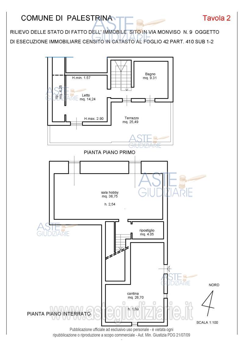 Vendita all'asta Senza incanto, con gara telematica asincrona - LOTTO 01: Quota pari a 1/1 del diritto di piena proprietà esclusiva sul seguente immobile sito in Palestrina (Roma), via Monviso n. 9, catastalmente ubicata su via 6 strada snc, e precisamente: Villetta identificata al Catasto Fabbricati Foglio 42, part. 410, Sub. 1, Categoria A/4, graffato con il sub 2, cl. 4, vani 5, sup. cat. 117 mq., R.C. euro 296,96, piano T-1-S1. Prezzo base € 72.000,00 (offerta minima € 54.000,00). Data inizio operazioni di vendita: 08/04/2026 ore 11:00. Giudice Dott. Marco Piovano. Professionista delegato alla vendita Avv. Diego Giugliano - Email "diego.giugliano@libero.it"; Tel. 0774335036. Custode Giudiziario Ivg Di Roma Srl - Email "pvp@visiteivgroma.it"; Tel. 0689569801. Rif. Tribunale di Tivoli - Espropriazione immobiliare (cartabia) n. 479/2024