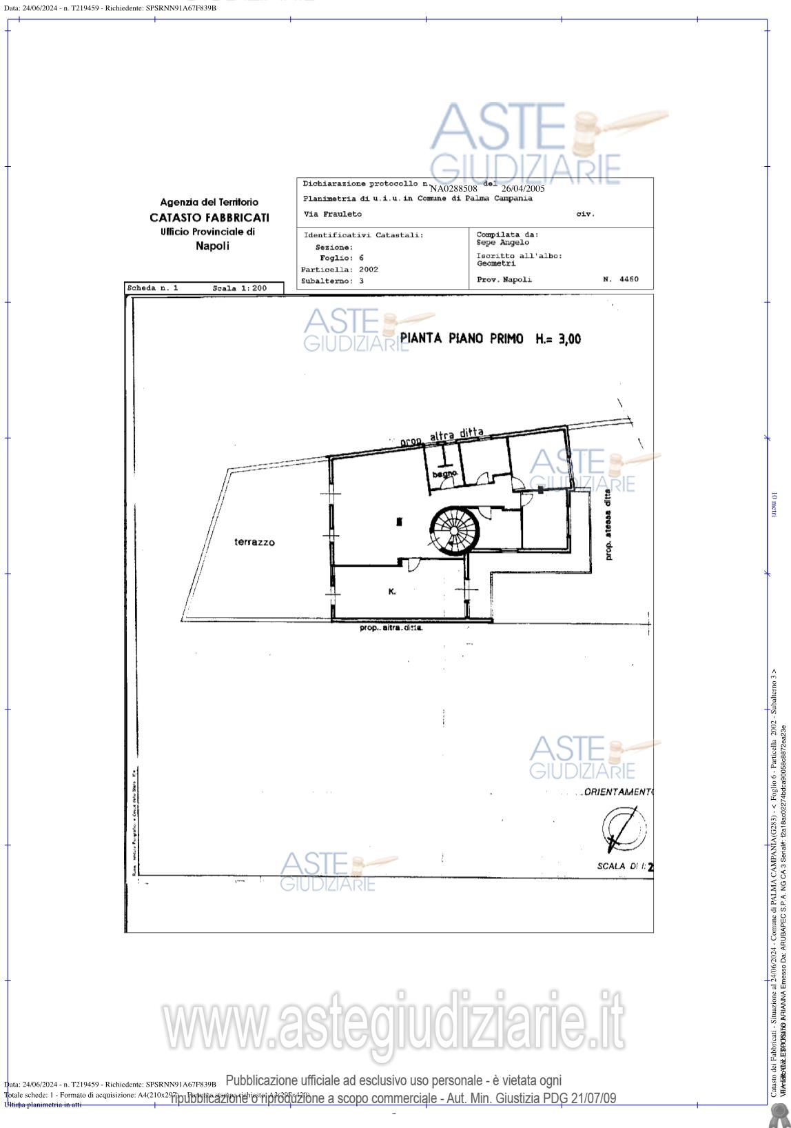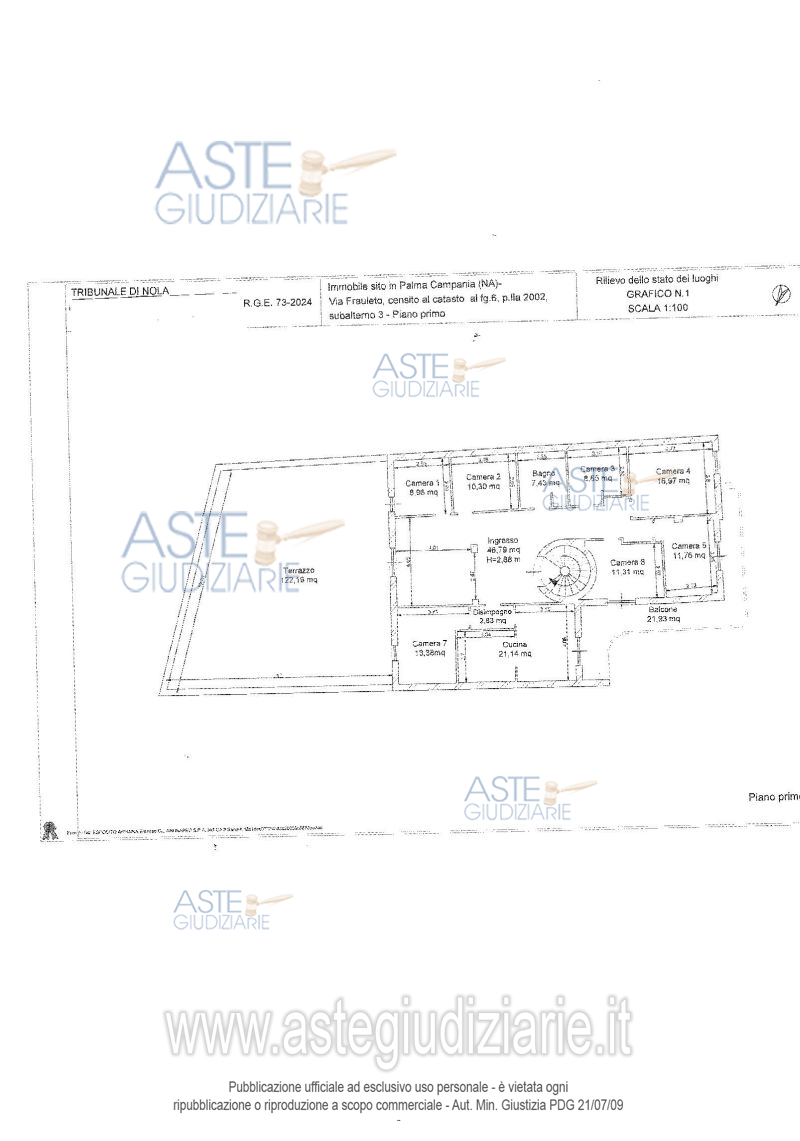 Vendita all'asta Senza incanto, con gara telematica asincrona - LOTTO UNICO: Piena ed intera proprietà di un appartamento sito in Via Frauleto n. 116 Palma Campania (NA) posto al primo piano, composto da sette camere, un bagno, una cucina, un balcone ed un terrazzo, superficie complessiva mq 207, 99. Prezzo base € 75.162,85 (offerta minima € 56.372,15). Data inizio operazioni di vendita: 03/03/2026 ore 10:30. Professionista delegato alla vendita Avv. Laura Daniela Vitillo - Email "avv.lauradanielavitillo@hotmail.com". Custode Giudiziario Avv. Laura Daniela Vitillo - Email "avv.lauradanielavitillo@hotmail.com"; Cell. 3408233452. Rif. Tribunale di Nola - Espropriazione immobiliare (cartabia) n. 73/2024