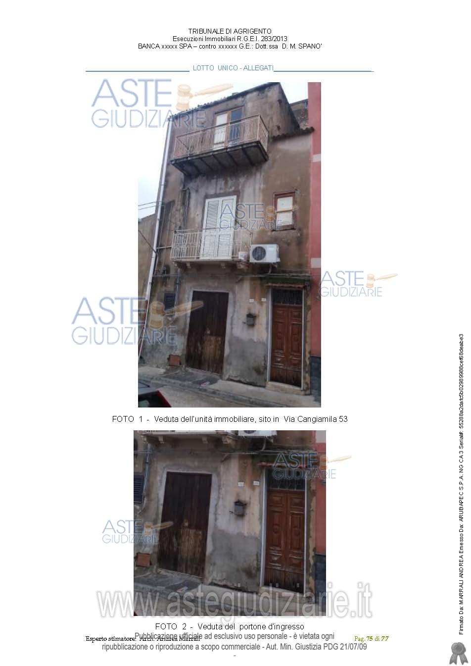 Vendita all'asta Senza incanto, con gara telematica sincrona mista - LOTTO UNICO: Lotto unico: “Piena proprietà per la quota di 1000/1000 di un appartamento sito in Palma di Montechiaro, Via Cangiamila 53, piano terra, primo e secondo, composto da cinque vani ed accessori, sviluppa una superficie lorda complessiva di circa mq. identificato in catasto edilizio del Palma di Montechiaro foglio 9 particella 453, sub 1, cat. A4, rendita catastale € 232,41. – stato di occupazione: in corso di liberazione. Prezzo base € 13.249,58 (offerta minima € 9.937,18). Data vendita 12/06/2026 ore 11:00. Giudice Domenica Spano'. Professionista delegato alla vendita Dott. Luigi Micciche' - Email "luigi.micciche@libero.it"; Tel. 0922597868. Custode Giudiziario Dott. Luigi Micciche' - Email "luigi.micciche@libero.it"; Tel. 0922597868. Rif. Tribunale di Agrigento - Esecuzione immobiliare post legge 80 n. 283/2013