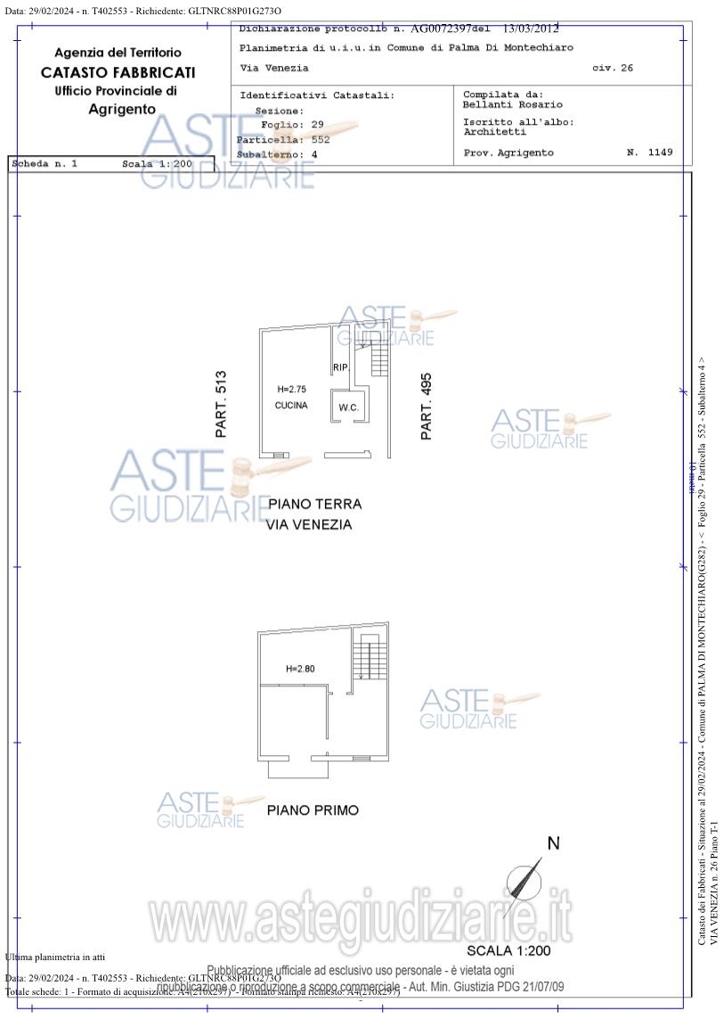 Vendita all'asta Senza incanto, con gara telematica sincrona mista - LOTTO UNICO: Immobile sito in Palma di Montechiaro (AG) in via Venezia n. 26, destinato a civile abitazione con accesso diretto dalla pubblica via, si sviluppa su due livelli (p.t e p.1) e sottotetto; identificato al catasto fabbricati del comune di Palma di Montechiaro al F.29, part. 552, sub 4 Categoria A/4, Classe 3, Consistenza 5 vani, Rendita: Euro 232,41. Prezzo base € 11.719,69 (offerta minima € 8.789,77). Data vendita 05/06/2026 ore 12:30. Giudice Vitalba Pipitone. Professionista delegato alla vendita Dott. Patrizia Di Francesco - Email "patriziadif@libero.it"; Tel. 092229247. Custode Giudiziario Dott. Patrizia Di Francesco - Email "patriziadif@libero.it"; Tel. 092229247. Rif. Tribunale di Agrigento - Esecuzione immobiliare post legge 80 n. 149/2022