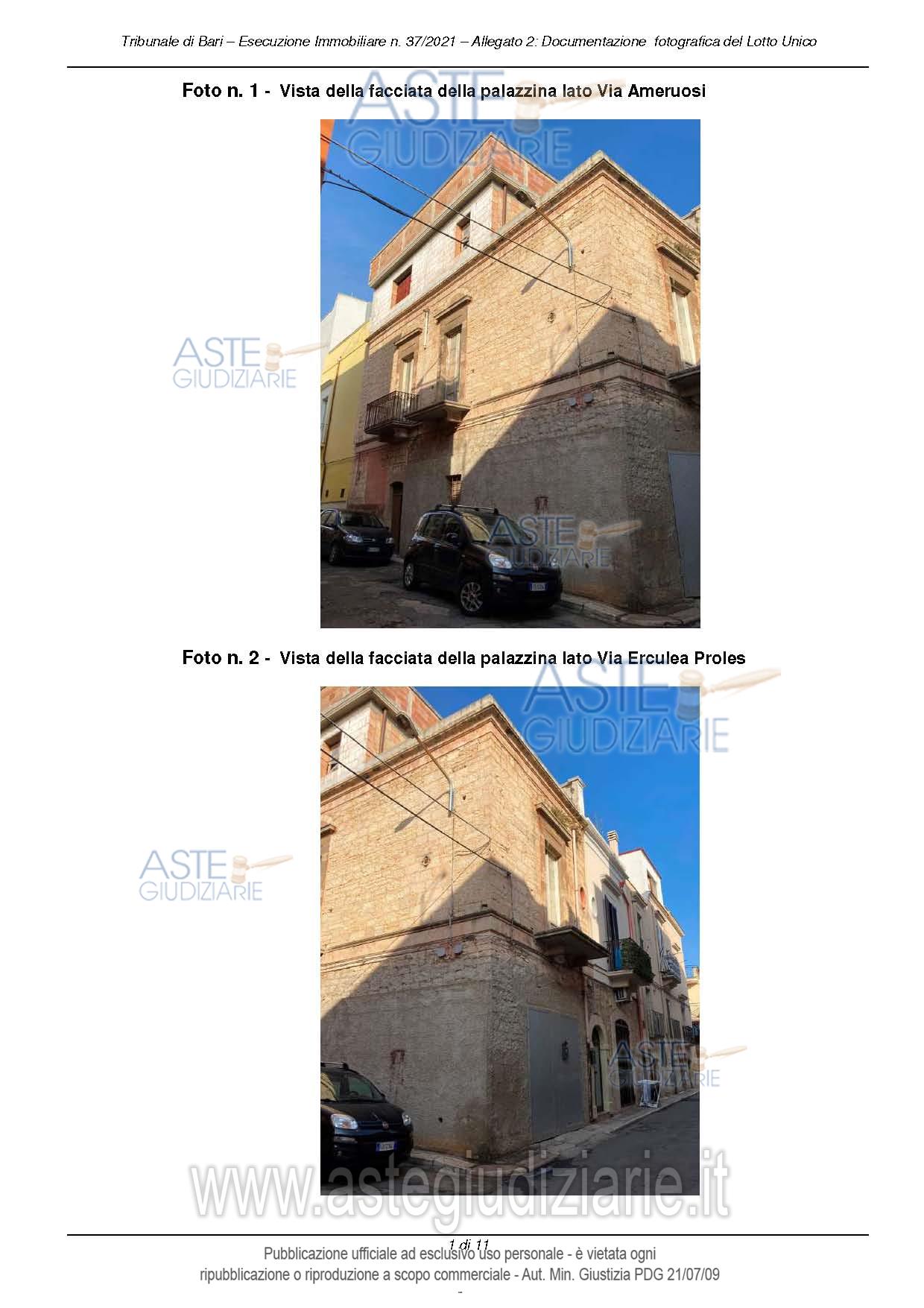 Vendita all'asta Senza incanto, con gara telematica asincrona - LOTTO UNICO: Il lotto è costituito da una palazzina formata da tre beni : Appartamento a piano 1-2, e n.2 rimesse a piano terra,. Prezzo base € 41.152,36 (offerta minima € 32.921,81). Data inizio operazioni di vendita: 20/11/2025 ore 15:30. Giudice Dott. Marina Cavallo. Professionista delegato alla vendita Avv. Maria Liso - Email "avvmarialiso@libero.it"; Tel. 0803212828. Custode Giudiziario Avv. Maria Liso - Email "avvmarialiso@libero.it". Rif. Tribunale di Bari - Esecuzione immobiliare post legge 80 n. 37/2021