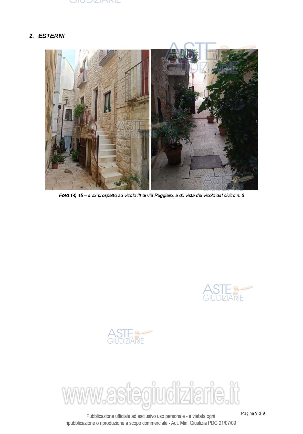 Vendita all'asta Senza incanto, con gara telematica asincrona - LOTTO UNICO: Alloggio residenziale di 3 vani ed accessori, costituito da soggiorno/pranzo a piano primo, camera da letto doppia al piano secondo e soffitta al piano terzo, con locale cantinola a piano terra. Locale deposito a piano terra costituito da due ambienti comunicanti con wc. Prezzo base € 46.125,00 (offerta minima € 34.593,75). Data inizio operazioni di vendita: 16/04/2026 ore 17:30. Giudice Dott. Marisa Attollino. Professionista delegato alla vendita Avv. Simona Carabba - Email "avvsimonacarabba@libero.it". Custode Giudiziario Avv. Simona Carabba - Email "avvsimonacarabba@libero.it". Rif. Tribunale di Bari - Esecuzione immobiliare post legge 80 n. 248/2022