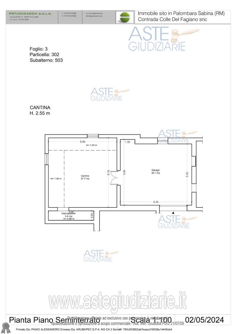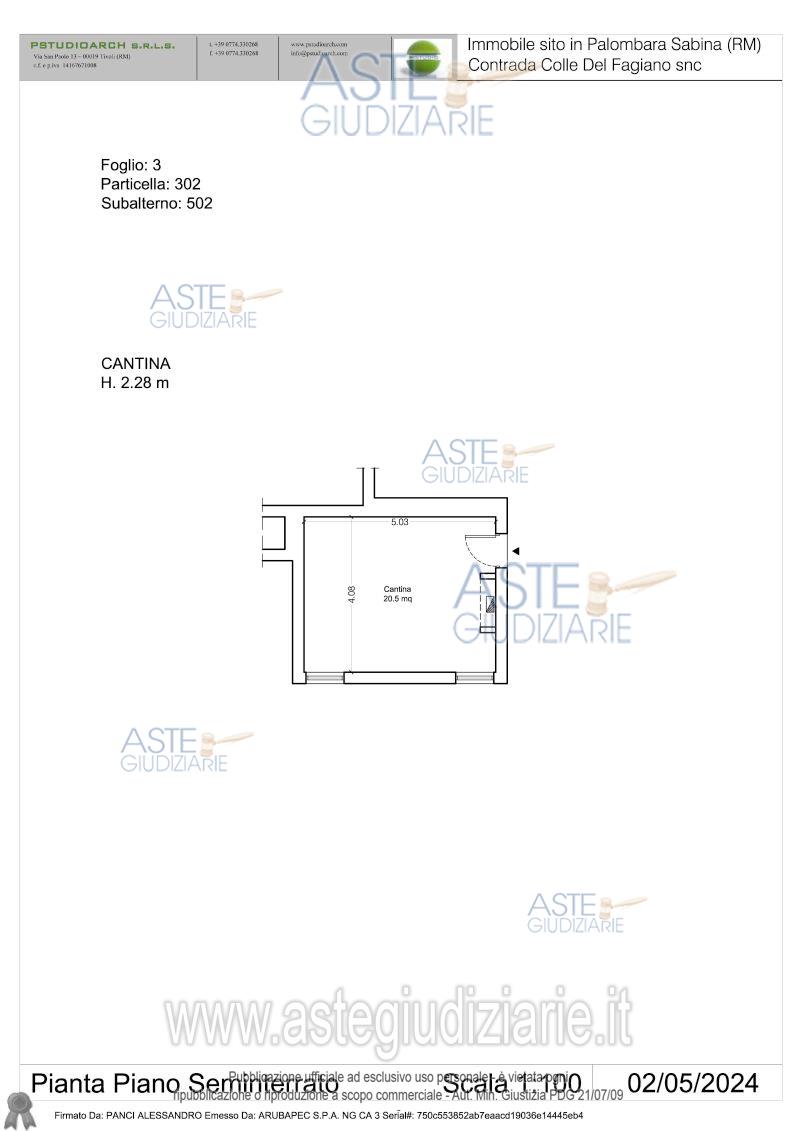 Vendita all'asta Senza incanto, con gara telematica asincrona - LOTTO UNICO: Piena proprietà: Bene n. 1: appartamento ubicato a Palombara Sabina (RM) in strada di Colle Fagiano n. 35, loc. Colle Fagiano, piano T. L'appartamento è così suddiviso: piano terra, zona giorno con cucina a vista e zona notte con 3 camere da letto e bagno. Bene n. 2: Autorimessa piano S1. Bene n. 3: Cantina piano S1. Bene n. 4: Cantina piano S1. Occupato da uno dei debitori, che vi abita unitamente a suoi familiari, di cui n. 2 figli minori. Prezzo base € 103.500,00 (offerta minima € 77.625,00). Data inizio operazioni di vendita: 03/03/2026 ore 11:00. Giudice Dott. Francesco Lupia. Professionista delegato alla vendita Avv. Carlo Rainaldi - Email "carlo.rainaldi@hotmail.it"; Cell. 3405705302. Custode Giudiziario Ivg Di Roma S.R.L. - Email "pvp@visiteivgroma.it"; Tel. 0689569801. Rif. Tribunale di Tivoli - Esecuzione immobiliare post legge 80 n. 409/2023
