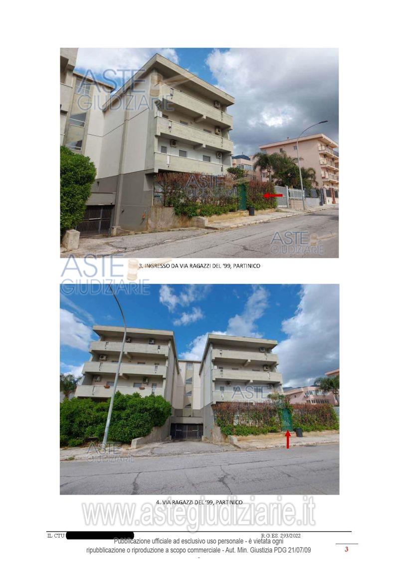 Vendita all'asta Senza incanto, con gara telematica sincrona mista - LOTTO UNICO: piena proprietà di un appartamento per civile abitazione, sito a Partinico (PA) in Via Sandro Pertini n. 10, piano terra, scala A, interno 2, identificato al N.C.E.U. del Comune di Partinico al foglio 40, particella 3368, subalterno 10, categoria A/2 e del posto auto in garage sito a Partinico con accesso da Via da denominare oggi via Ragazzi del ’99, piano interrato S1, scala A, identificato al N.C.E.U. del Comune di Partinico nel foglio 40, particella 3368, subalterno 32, categoria C/6, . Prezzo base € 22.561,74 (offerta minima € 16.921,31). Data vendita 06/02/2026 ore 11:00. Professionista delegato alla vendita Avv. Giovanni Rizzo - Email "giovanni_rizzo@hotmail.it"; Tel. 0917910068. Custode Giudiziario Avv. Giovanni Rizzo - Email "giovanni_rizzo@hotmail.it"; Tel. 0917910068. Rif. Tribunale di Palermo - Esecuzione immobiliare post legge 80 n. 293/2022