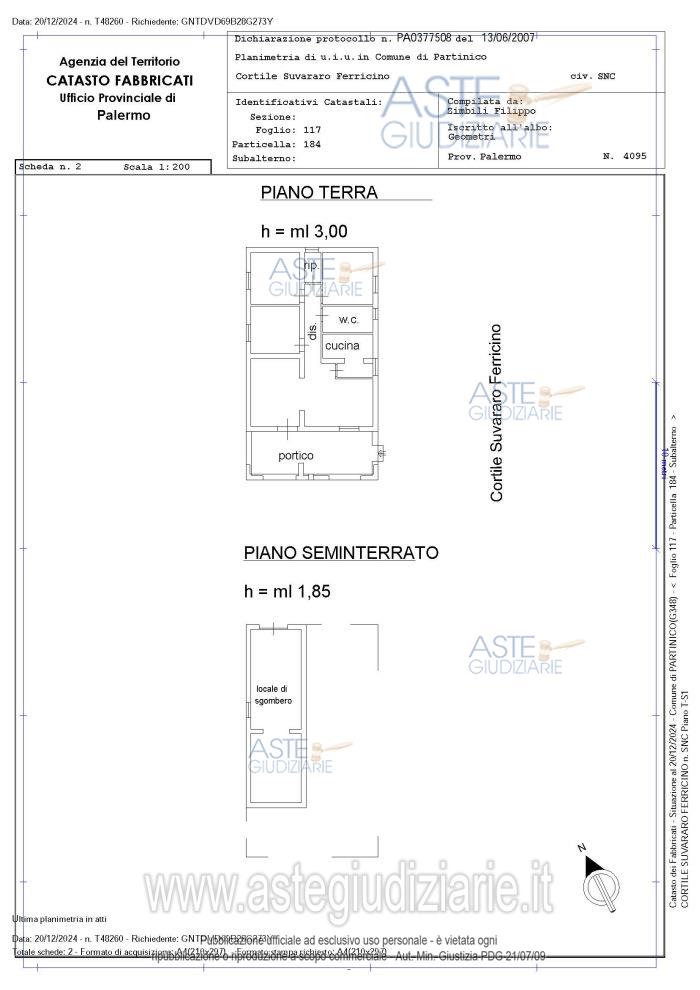 Vendita all'asta Senza incanto, con gara telematica sincrona mista - LOTTO 1: Piena proprietà immobile sito nel Comune di Partinico e precisamente Contrada Suveraro Ferricino, al piano terra, con terreno circostante su cui insiste; composto da