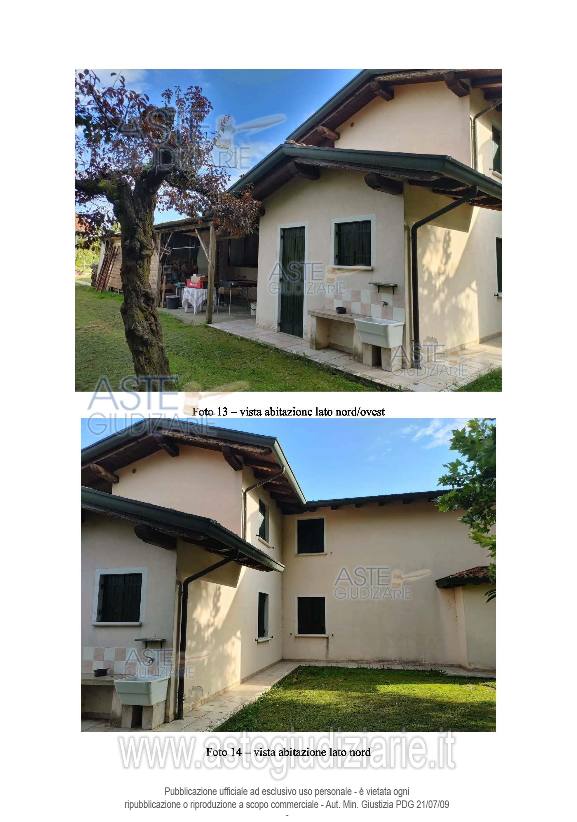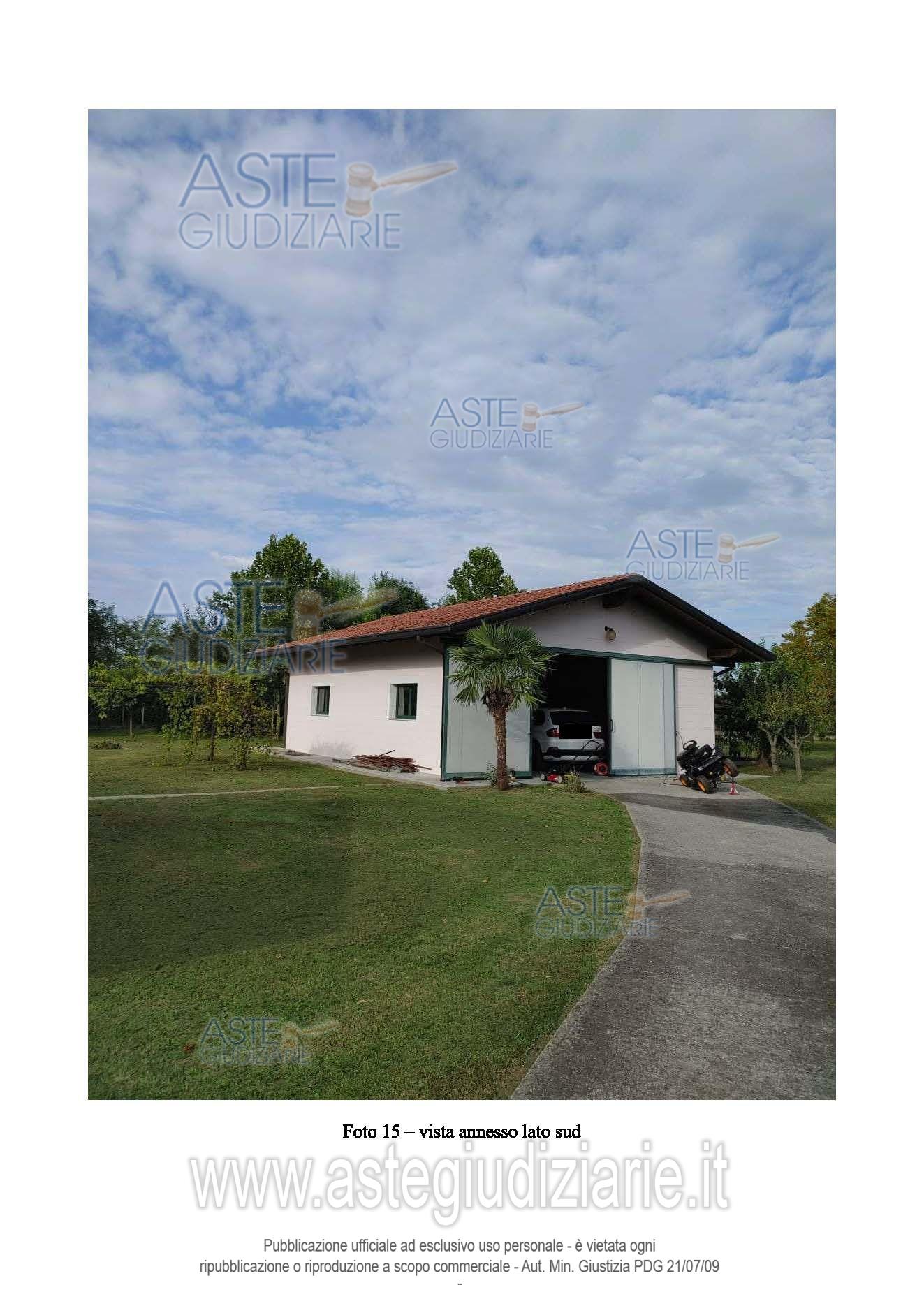Vendita all'asta Senza incanto, con gara telematica sincrona - LOTTO UNICO: Casa singola disposta su 2 piani con accessori e garage posti al PT, un magazzino staccato e un ampio giardino recintato. Dalle planimetrie catastali l'immobile risulta così composto: al piano terra cucina-soggiorno, ripostiglio, corridoio, CT-lavanderia, bagno, cantina e porticato, ed un garage; al piano primo 3 camere, un corridoio, un bagno ed un ripostiglio, in corpo staccato al piano terra vi è un locale di deposito. Occupata. Difformità catastali ed edilizie sanabili. Prezzo base € 165.307,30 (offerta minima € 123.981,00). Data vendita 25/11/2025 ore 17:00. Giudice Dott. Elisa Tesco. Professionista delegato alla vendita Not. Annalisa Gandolfi - Email "agandolfi@notariato.it". Custode Giudiziario Custode Giudiziario - Email "custodi@associazionenotarile.pn.it"; Tel. 3294536349. Rif. Tribunale di Pordenone - Esecuzione immobiliare post legge 80 n. 28/2023