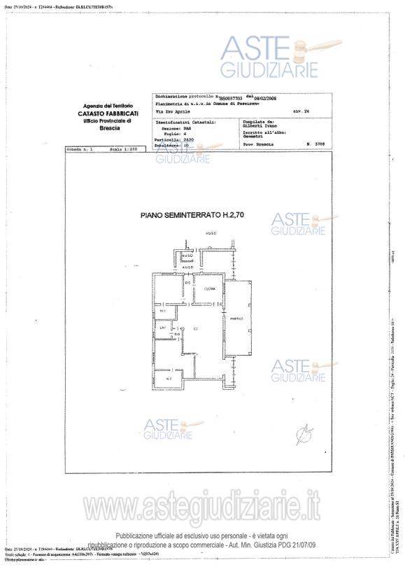 Vendita all'asta Senza incanto, con gara telematica asincrona - LOTTO UNICO: Piena proprietà di unità immobiliare al piano seminterrato composta da: soggiorno, cucina separata, due corridoi, due camere da letto ciascuna con bagno, lavanderia e ripostiglio. Superficie commerciale complessiva di ca mq 200,23. Occupato. Prezzo base € 157.681,12 (offerta minima € 118.260,84). Data inizio operazioni di vendita: 14/07/2026 ore 12:00. Professionista delegato alla vendita Avv. Rossana Delbarba - Email "dott.rossana.delbarba@outlook.it"; Tel. 3775740488. Custode Giudiziario Avv. Rossana Delbarba - Email "dott.rossana.delbarba@outlook.it"; Tel. 3775740488. Rif. Tribunale di Brescia - Espropriazione immobiliare (cartabia) n. 200/2025