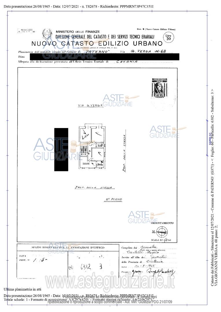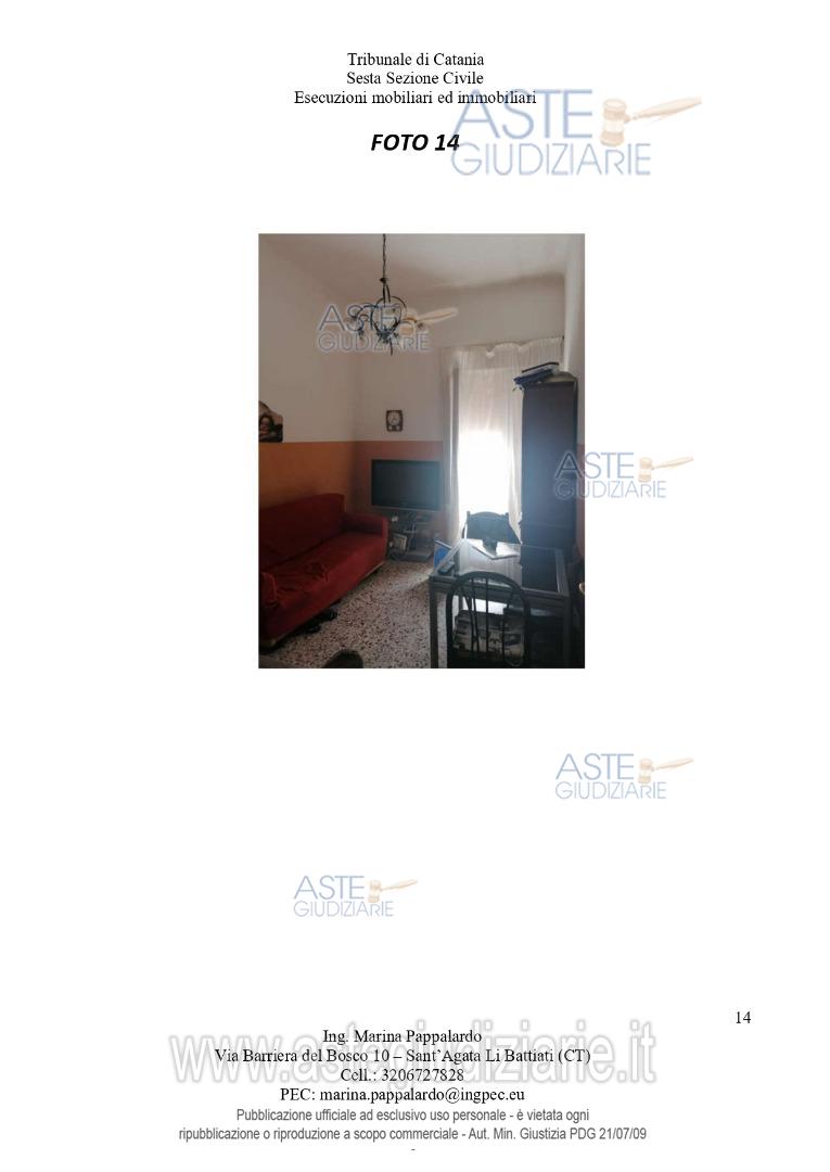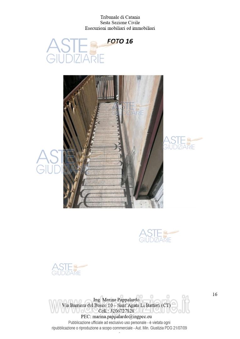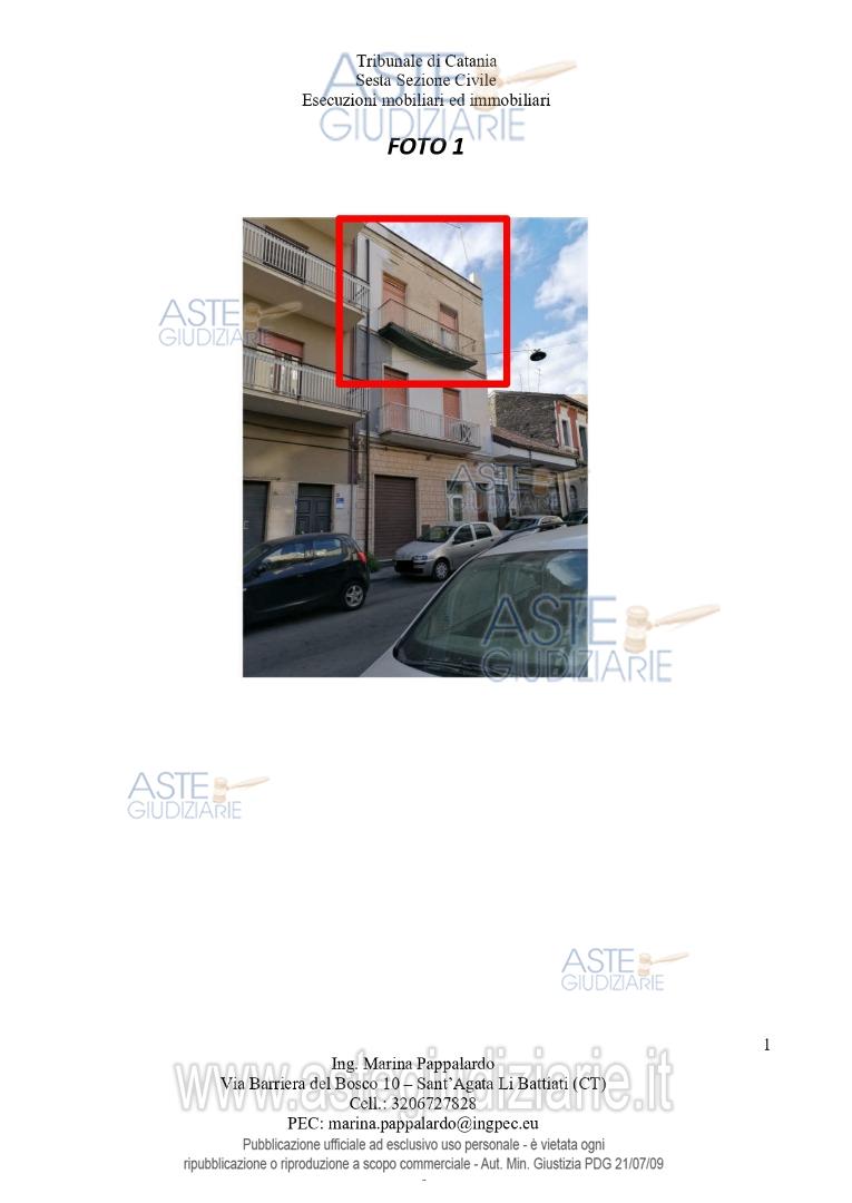 Vendita all'asta Senza incanto, con gara telematica sincrona mista - LOTTO UNICO: Appartamento sito in Paternò (CT), Via G. Verga n. 68, posto al piano secondo, avente superficie commerciale mq. 84; il tutto identificato al Catasto Fabbricati del detto comune al Foglio 60, Particella 6382, sub. 3, Categ. A/3, classe 3, vani 5, superficie catastale mq. 83, rendita catastale € 258,23. Prezzo base € 21.938,00 (offerta minima € 16.454,00). Data vendita 07/05/2026 ore 16:00. Professionista delegato alla vendita Avv. Sergio Finocchiaro - Email "visite@aavg.it"; Tel. 0952163386. Custode Giudiziario Avv. Sergio Finocchiaro - Email "visite@aavg.it"; Tel. 0952163386. Rif. Tribunale di Catania - Esecuzione immobiliare post legge 80 n. 1466/2017
