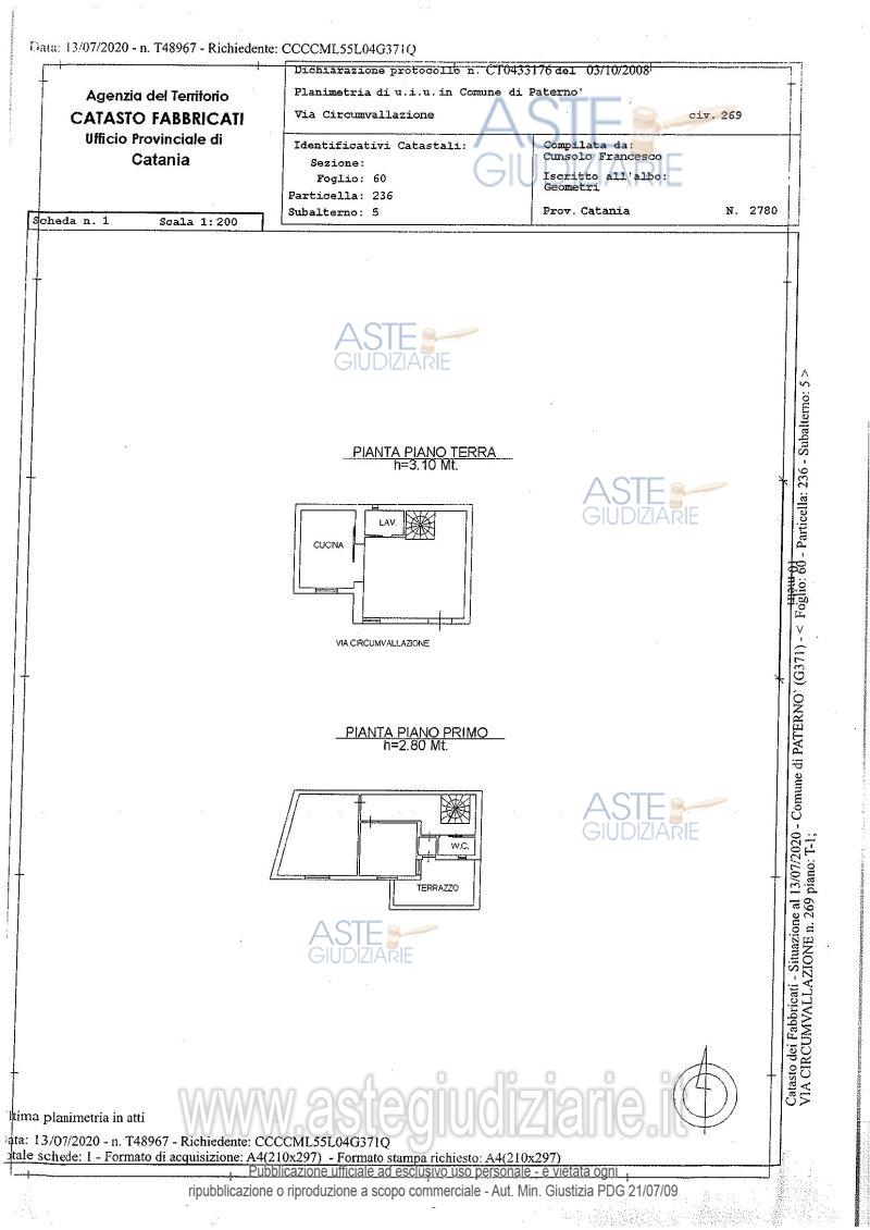 Vendita in attesa dell'emissione del nuovo bando d'asta. LOTTO 1: proprietà di una casa per civile abitazione in Paternò nella Via Circumvallazione n° 269 avente una superficie utile di circa di mq. 70 e posta al piano terra rialzato. Agenzia del Territorio di Catania – CF del Comune di Paternò:- al Foglio 60, particella 236, sub. 5 (già sub. 1) graffato alla particella 1815 sub. 3 (già sub2), cat. A/4, cl 5, consistenza 5,5 vani catastali, sup. catastale totale 95 mq. - totale escluse aree scoperte 92 mq., rendita euro 267,01, Via Circumvallazione n° 269, piano T-1;. Ultimo prezzo base € 33.750,00 (offerta minima € 25.312,50). Professionista delegato alla vendita Avv. Francesco Grasso Leanza - Email "francescograssoleanza@email.it"; Cell. 3479110415. Custode Giudiziario Avv. Francesco Grasso Leanza - Email "francescograssoleanza@email.it"; Cell. 3479110415. Rif. Tribunale di Catania - Esecuzione immobiliare post legge 80 n. 1133/2017
